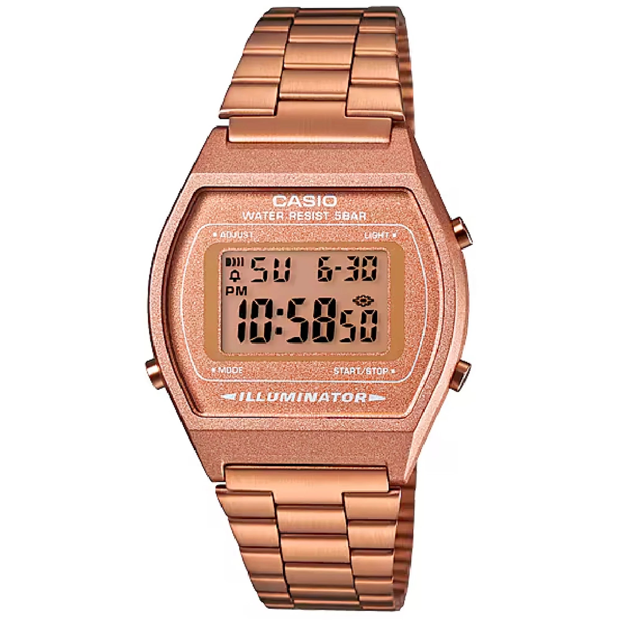 In einer Welt, in der Zeit sowohl ein Luxus als auch eine Notwendigkeit ist, erscheint die CASIO Retro Vintage Uhr als ein Leuchtturm zeitloser Eleganz und moderner Funktionalität. In einem raffinierten Design gefertigt, fängt diese Unisex-Uhr die Essenz lässiger Raffinesse mit ihrem markanten tonneauförmigen Gehäuse ein, das in einem warmen Roségoldton erstrahlt. Der 39mm Gehäusedurchmesser findet die perfekte Balance zwischen Kühnheit und Zurückhaltung und macht sie zu einem idealen Accessoire für jeden Anlass. Das roségoldene Edelstahlarmband, gesichert mit einer Butterfly-Faltschließe mit Druckknopf, ergänzt das Gehäuse nahtlos und schafft eine harmonische Verbindung von Stil und Haltbarkeit. Das digitale Display, vor einem passenden roségoldenen Zifferblatt, bietet einen Hauch von Retro-Charme und gleichzeitig moderne Annehmlichkeiten wie Tages- und Datumsanzeige, Chronograph, Alarm, Timer und Lichtfunktionen. Mit einer Wasserdichtigkeit von bis zu 50 Metern ist diese Uhr ebenso vielseitig wie stilvoll und bereit, Sie durch die Abenteuer des Lebens zu begleiten. Die Pull & Push-Krone und das Kunststoffglas tragen zu ihrem Vintage-Reiz bei, während das Quarzwerk Präzision und Zuverlässigkeit gewährleistet. Diese CASIO Retro Vintage Uhr ist nicht nur ein Zeitmesser, sondern ein Statement der Individualität und eine Feier der Vergangenheit, Gegenwart und Zukunft.
