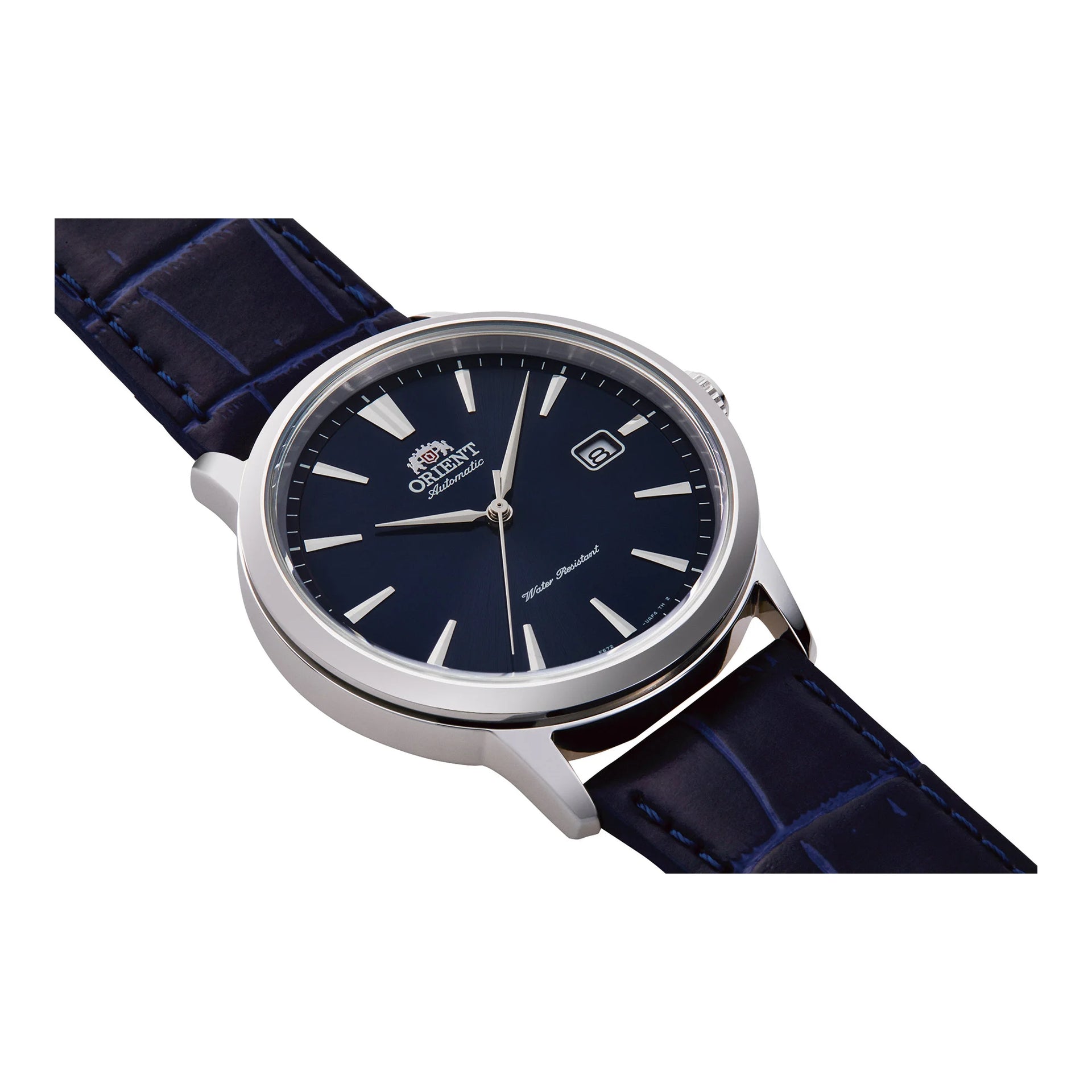 Im Bereich der Zeitmesser, wo Eleganz auf Funktionalität trifft, steht die ORIENT AC0F Symphony III als ein Zeugnis für raffiniertes Design und zeitlosen Reiz. Gefertigt im Herzen horologischer Exzellenz, verkörpert diese Uhr die perfekte Mischung aus Raffinesse und lässigem Stil, was sie zum idealen Begleiter für den modernen Gentleman macht. Das runde Gehäuse mit seinem silbergrauen Farbton strahlt eine subtile, aber auffällige Präsenz am Handgelenk aus, während der Durchmesser von 41 mm für jeden Anlass einen bequemen Sitz gewährleistet. Das Mineralglas schützt ein faszinierendes blaues Zifferblatt, das an den tiefen Ozean erinnert, wo der Tanz der drei Zeiger vom präzisen F6722 Kaliber orchestriert wird. Mit 22 Steinen und einer täglichen Genauigkeit von +25/-15 bietet dieses mechanische Wunderwerk sowohl Handaufzugs- als auch Automatikfunktionen und garantiert Zuverlässigkeit und Präzision. Der transparente Boden offenbart die komplexen Abläufe des Uhrwerks, ein Merkmal, das Uhrenliebhaber zweifellos begeistern wird. Das Edelstahlarmband, das in seiner silbergrauen Eleganz zum Gehäuse passt, ist mit einer Dornschließe gesichert und bietet sowohl Haltbarkeit als auch Stil. Bis zu 50 Meter wasserdicht, ist diese Uhr so vielseitig wie schön und bereit, Sie vom Konferenzraum bis zum Strand zu begleiten. Der Datumsanzeiger fügt eine praktische Note hinzu und sorgt dafür, dass Sie mit Anmut im Zeitplan bleiben. Die ORIENT AC0F Symphony III ist nicht nur eine Uhr, sondern ein Statement des Geschmacks und eine Feier der Kunst der Uhrmacherei.