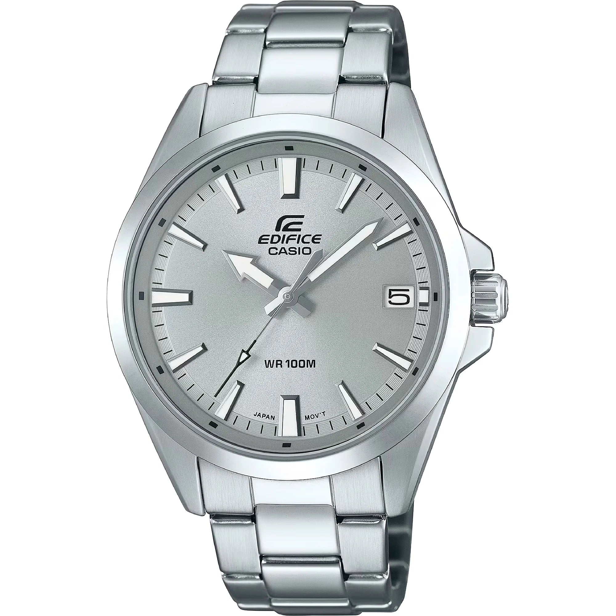 Im Bereich der Zeitmessung, wo Präzision auf Eleganz trifft, entsteht ein Meisterwerk aus der CASIO Edifice Kollektion. Im Herzen der Innovation gefertigt, verkörpert diese Uhr die perfekte Mischung aus Funktionalität und Stil, entworfen für den modernen Mann, der beides schätzt. Ihr rundes Gehäuse, getaucht in ein elegantes Silbergrau, misst selbstbewusste 42 mm im Durchmesser und setzt ein Statement subtiler Autorität am Handgelenk. Das Mineralglas schützt ein steingraues Zifferblatt, eine Leinwand zurückhaltender Eleganz, die von zeitloser Raffinesse flüstert. Mit einer Wasserdichtigkeit von bis zu 100 Metern ist diese Uhr ebenso abenteuerlustig wie raffiniert und bereit, Sie von Vorstandssitzungen bis zu Wochenendabenteuern zu begleiten. Das Edelstahlarmband, ebenfalls in Silbergrau, schmiegt sich mit einer Butterfly-Faltschließe ums Handgelenk und sorgt für Sicherheit und Komfort. Die Pull & Push-Krone bietet einfache Verstellung, während das Quarzwerk Präzision bei jedem Tick garantiert. Ein dezent auf dem Zifferblatt positionierter Datumsanzeiger fügt der analogen Anzeige eine praktische Note hinzu. Diese CASIO Edifice Uhr ist nicht nur ein Accessoire, sondern ein Zeugnis der Uhrmacherkunst, bei der jedes Detail sorgfältig gestaltet ist, um das Wesen lässiger Raffinesse widerzuspiegeln.