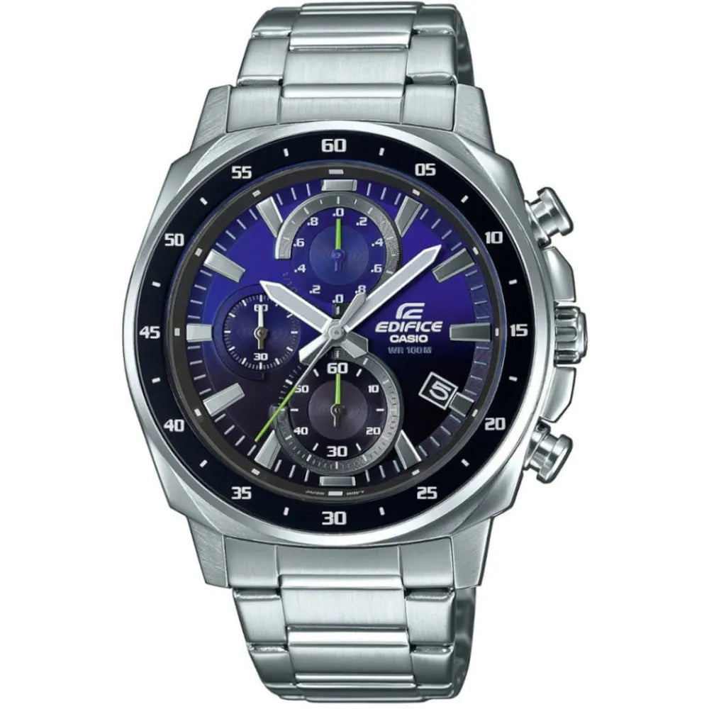 Erleben Sie die CASIO Edifice, wo lässiger Stil auf technische Finesse trifft. Das 44mm silbergraue Gehäuse und das blaue Zifferblatt sind mit einem Edelstahlarmband und einer sicheren Faltschließe kombiniert. Mit 100m Wasserdichtigkeit ist diese Uhr für den anspruchsvollen Gentleman gefertigt, der Exzellenz verlangt.