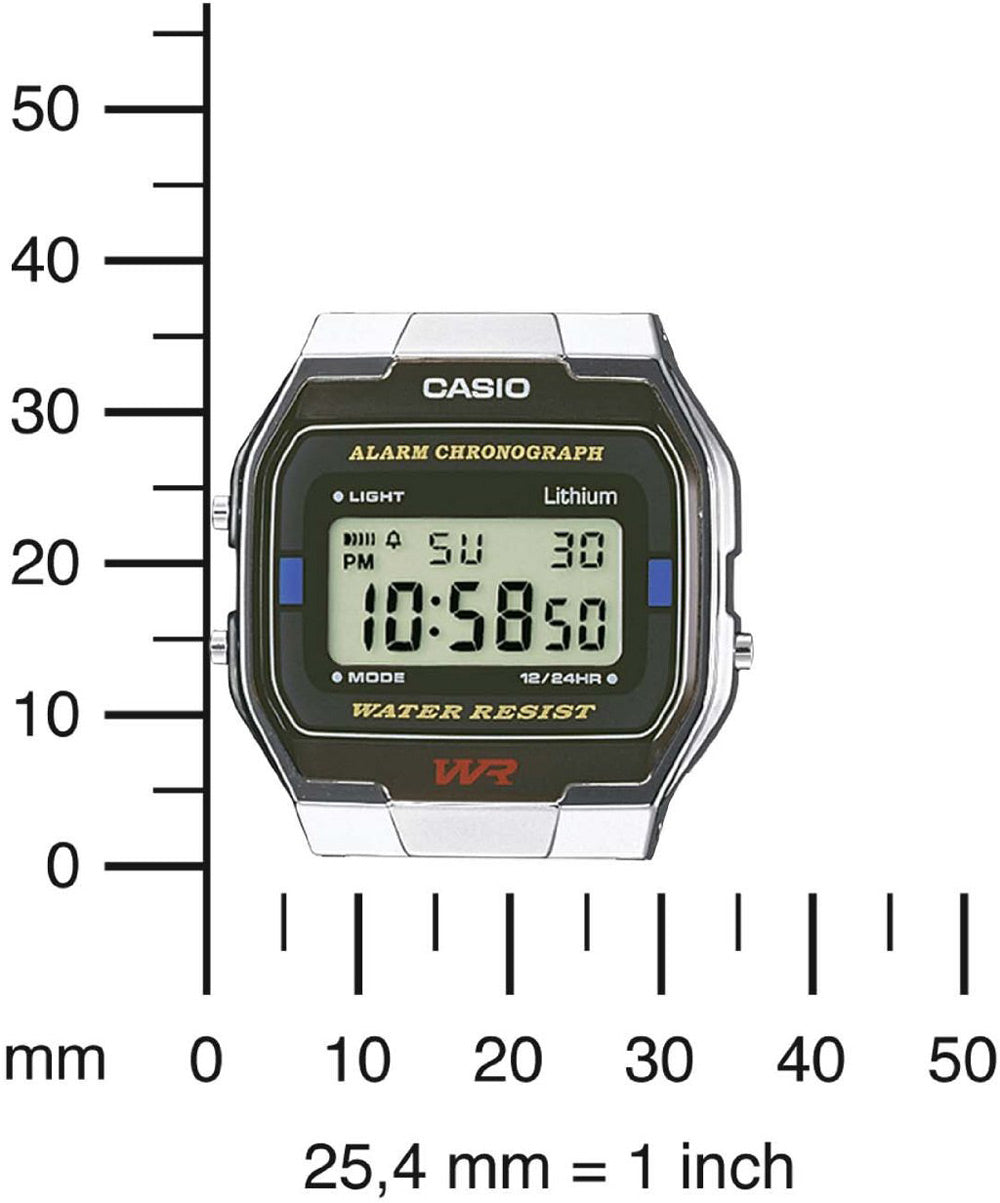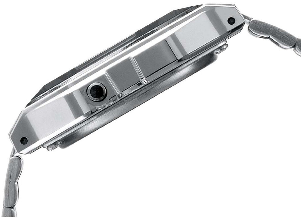 Kompakt und dennoch auffällig, verfügt diese Casio Digitaluhr über ein 33mm tonneau Gehäuse in Silbergrau, ein schwarzes LCD-Zifferblatt und ein Edelstahlarmband. Ihre Wasserbeständigkeit und der verstellbare Verschluss spiegeln Casios Engagement für Komfort und Funktionalität wider, während das schlanke Design das digitale Erbe der Marke würdigt.
