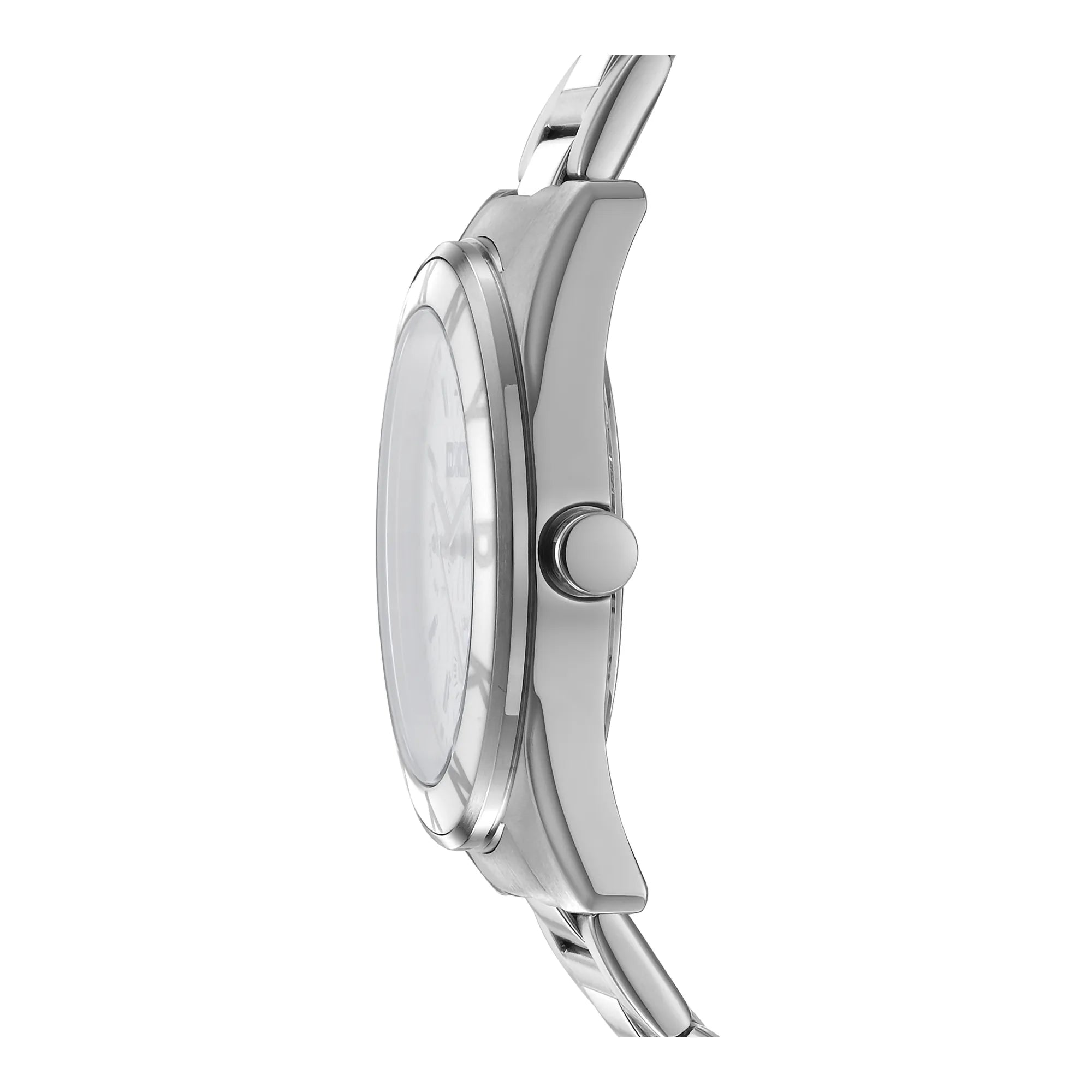 Im pulsierenden Herzen von New York City, wo Mode auf Funktion trifft, entsteht eine Uhr, die den Geist moderner Eleganz verkörpert – die DKNY Chambers Multi Sport Uhr. Gefertigt in einer raffinierten runden Silhouette, ist diese Uhr ein Zeugnis zeitgenössischen Stils mit ihrem schlanken silbergrauen Gehäuse und dem passenden Edelstahlarmband. Der 36-mm-Gehäusedurchmesser findet die perfekte Balance zwischen Kühnheit und Zurückhaltung und macht sie zu einem idealen Accessoire für die modebewusste Frau. Das Mineralglas schützt ein anspruchsvolles silbergraues Zifferblatt, auf dem die Kunst der Zeitmessung durch ein Multifunktionsdisplay erhöht wird. Mit einem Quarzwerk im Inneren sorgt diese Uhr für Präzision und Zuverlässigkeit, während der Tages- und Datums-Kalendertyp ihrem schicken Design eine praktische Note verleiht. Die Faltschließe mit Druckknopfverschluss bietet sowohl Sicherheit als auch Tragekomfort und macht sie zu einer nahtlosen Ergänzung jedes Outfits. Bis zu 50 Meter wasserdicht, ist diese Uhr so vielseitig wie stilvoll und bereit, Sie vom Konferenzraum bis zum Wochenendausflug zu begleiten. Die DKNY Chambers Multi Sport Uhr ist nicht nur ein Accessoire, sondern ein Statement von raffiniertem Geschmack und moderner Raffinesse, das die Essenz einer Stadt einfängt, die niemals schläft.