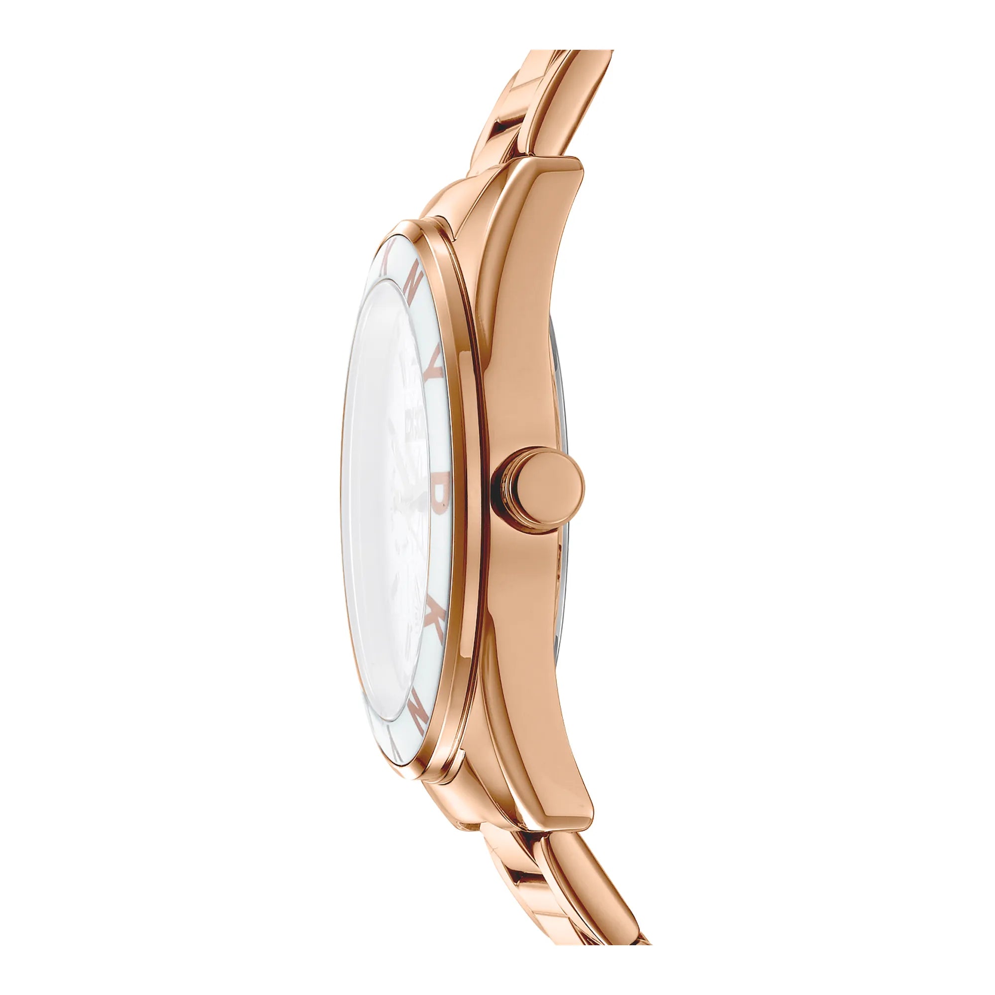 Im Herzen urbaner Eleganz erscheint die DKNY Chambers Multi Sport Uhr als ein Leuchtturm zeitgenössischen Stils und Raffinesse. Gefertigt in einem raffinierten Design, ist diese Armbanduhr ein Zeugnis für den dynamischen Lebensstil der modernen Frau. Das runde Gehäuse, getaucht in einen luxuriösen Roségoldton, fängt die Essenz von Weiblichkeit und Anmut ein, während sein Durchmesser von 36 mm ein perfektes Gleichgewicht zwischen Präsenz und Zurückhaltung gewährleistet. Das Mineralglas schützt ein silbergraues Zifferblatt, auf dem die Kunst der Zeitmessung auf modische Ästhetik trifft. Dieses Multifunktionsdisplay, angetrieben von einem präzisen Quarzwerk, bietet nicht nur die Zeit, sondern auch Tages- und Datumsfunktionen und macht es zu einem unverzichtbaren Begleiter für die Frau unterwegs. Das Edelstahlarmband, ebenfalls in Roségold, schmiegt sich mit einer Butterfly-Faltschließe um das Handgelenk und sorgt für Sicherheit und Tragekomfort. Bis zu 50 Meter wasserdicht, ist diese Uhr so vielseitig wie stilvoll und bereit, Sie vom Konferenzraum bis zum Wochenendausflug zu begleiten. Die DKNY Chambers Multi Sport Uhr ist mehr als ein Accessoire, sie ist ein Statement von Eleganz und Modernität, entworfen für diejenigen, die die schönen Dinge im Leben schätzen.