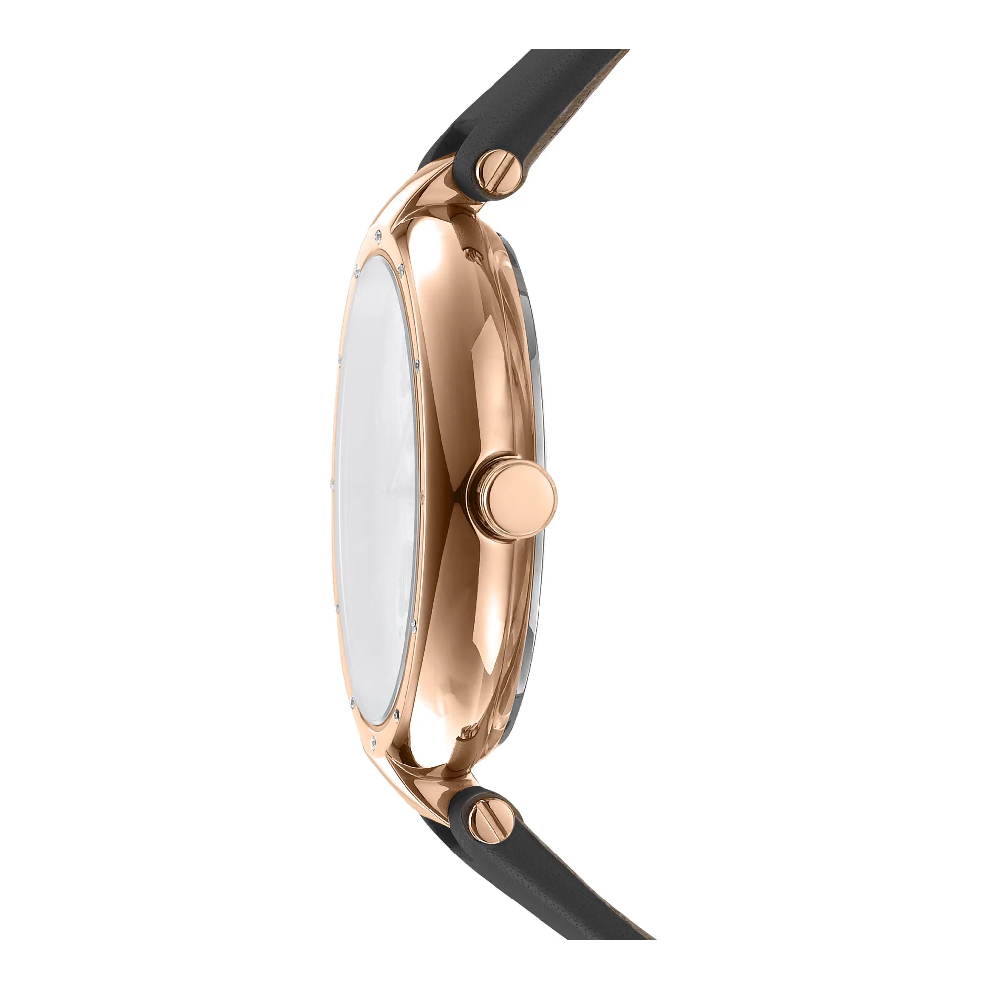 Im pulsierenden Herzen der Stadt, wo Mode auf Funktion trifft, erscheint die DKNY Downtown Multi Uhr als ein Leuchtturm des Stils und der Raffinesse. Gefertigt in einer runden Silhouette, strahlt ihr roségoldenes Gehäuse ein warmes, einladendes Leuchten aus, das die urbane Eleganz ihres Designs perfekt ergänzt. Mit einem Durchmesser von 38 mm ist dieses Zeitmessgerät ein Statement für verfeinerten Geschmack, ideal für die moderne Frau, die ihren Tag mit Anmut und Selbstvertrauen meistert. Das silbergraue Zifferblatt, das an eine schlanke Stadtsilhouette erinnert, ist eine Leinwand der Funktionalität und verfügt über eine Multifunktionsanzeige, die Tages- und 24-Stunden-Zeitindikatoren nahtlos integriert. Unter seinem Mineralglas beherbergt die Uhr ein präzises Quarzwerk, angetrieben vom zuverlässigen Kaliber 6P23, das sicherstellt, dass die Zeit immer auf Ihrer Seite ist. Das schwarze Lederarmband, gesichert mit einer Dornschließe, verleiht einen Hauch klassischer Raffinesse, während die Wasserdichtigkeit von bis zu 50 Metern für Ruhe in unerwarteten Momenten sorgt. Diese DKNY Uhr ist nicht nur ein Accessoire, sondern ein Zeugnis des dynamischen Geistes der Stadt, in der jede Sekunde zählt und jeder Moment eine Gelegenheit ist, zu glänzen.