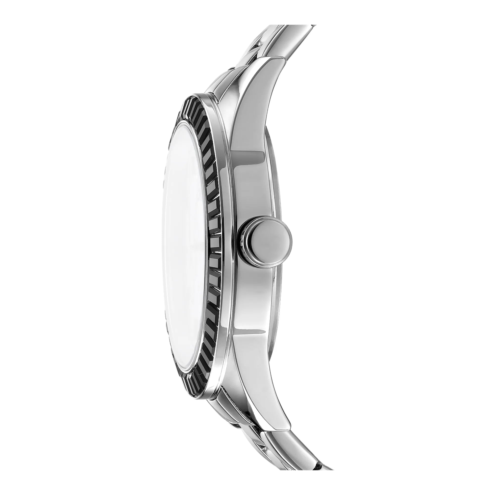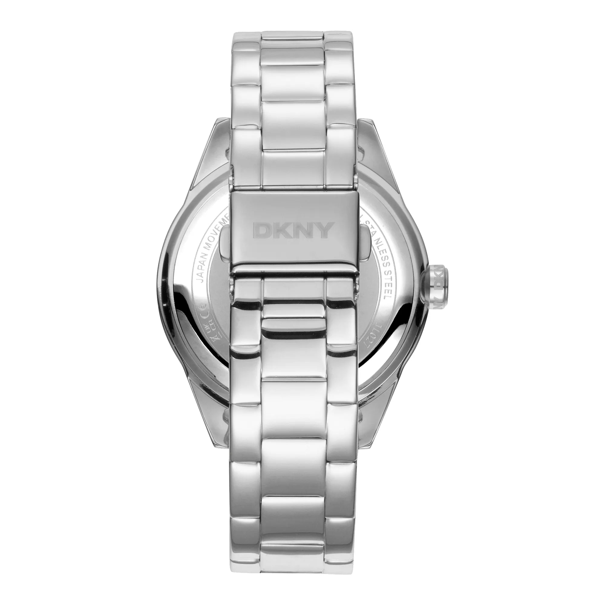 Im Herzen urbaner Eleganz erscheint die DKNY Nolita Multi Glitz Uhr als ein Leuchtturm zeitgenössischen Stils und Raffinesse. Gefertigt in einer schlanken runden Silhouette, strahlen ihr silbergraues Gehäuse und das passende Edelstahlarmband ein verfeinertes Design aus, das das Wesen moderner Mode einfängt. Der 40-mm-Gehäusedurchmesser bietet eine kühne und zugleich anmutige Präsenz am Handgelenk und macht sie zu einem idealen Accessoire für die modebewusste Frau. Mit einer Wasserdichtigkeit von bis zu 50 Metern ist diese Uhr ebenso praktisch wie stilvoll und bereit, Sie bei Regen und Sonnenschein zu begleiten. Das Mineralglas schützt das Zifferblatt und sorgt für Klarheit und Langlebigkeit, während die Pull-&-Push-Krone einfache Einstellungen ermöglicht. Das Multifunktionsdisplay mit Tages- und Datumsanzeige ist vor einem harmonischen silbergrauen Zifferblatt angeordnet und bietet eine nahtlose Verbindung von Funktionalität und Eleganz. Die Integration einer 24-Stunden-Anzeige fügt eine Ebene der Vielseitigkeit hinzu und erfüllt die Bedürfnisse der modernen Frau, die mühelos mehrere Zeitzonen navigiert. Die Schmetterlingsfaltschließe mit Druckknopfverschluss sorgt für einen sicheren und bequemen Sitz und macht sie zu einem verlässlichen Begleiter für jeden Anlass. Diese DKNY Uhr ist nicht nur ein Zeitmesser, sondern ein Stil-Statement, ein Spiegelbild der lebendigen Energie der Stadt und ein Zeugnis der zeitlosen Anziehungskraft von Silbergrau.