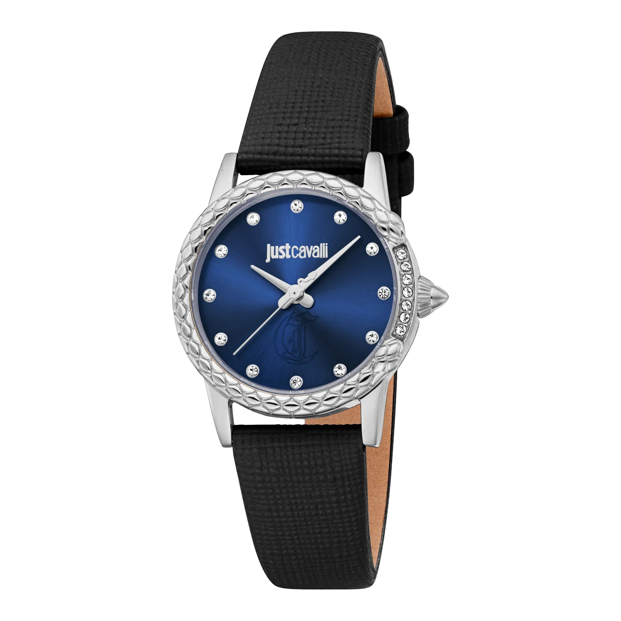 Im Bereich der Mode, wo Eleganz auf Kühnheit trifft, entsteht eine Uhr, die das Wesen kühner Raffinesse einfängt. Gefertigt im Herzen der Schweizer Uhrmacherkunst, ist diese Just Cavalli Uhr aus der illustren Animalier Kollektion ein Zeugnis des wagemutigen Geistes der Marke. Das runde Gehäuse, getaucht in ein elegantes Silbergrau, umschließt ein nachtblaues Zifferblatt, das Geschichten von Mitternachtsabenteuern und sternenklaren Nächten erzählt. Ihr raffiniertes Design wird durch ein schwarzes Lederarmband ergänzt, das einen Hauch klassischen Charmes mit modernem Twist bietet. Die Dornschließe sorgt für einen sicheren Sitz, während das Mineralglas das Zifferblatt mit Anmut schützt. Mit einem Gehäusedurchmesser von 30 mm ist diese Uhr die perfekte Begleiterin für die modebewusste Frau, die ihre Individualität lebt. Bis zu 50 Meter wasserdicht, ist sie bereit, Sie auf den unerwarteten Wegen des Lebens zu begleiten. Das Quarzwerk und die 3-Zeiger-Anzeige versprechen Präzision und Zuverlässigkeit, wodurch sie nicht nur eine Uhr, sondern ein Ausdruck von Charakter ist. Diese Just Cavalli Uhr ist mehr als ein Accessoire, sie ist die Verkörperung von Stil und Selbstbewusstsein, ein Stück, das es wagt, das Gewöhnliche zu überwinden und Sie einlädt, das Außergewöhnliche zu entdecken.
