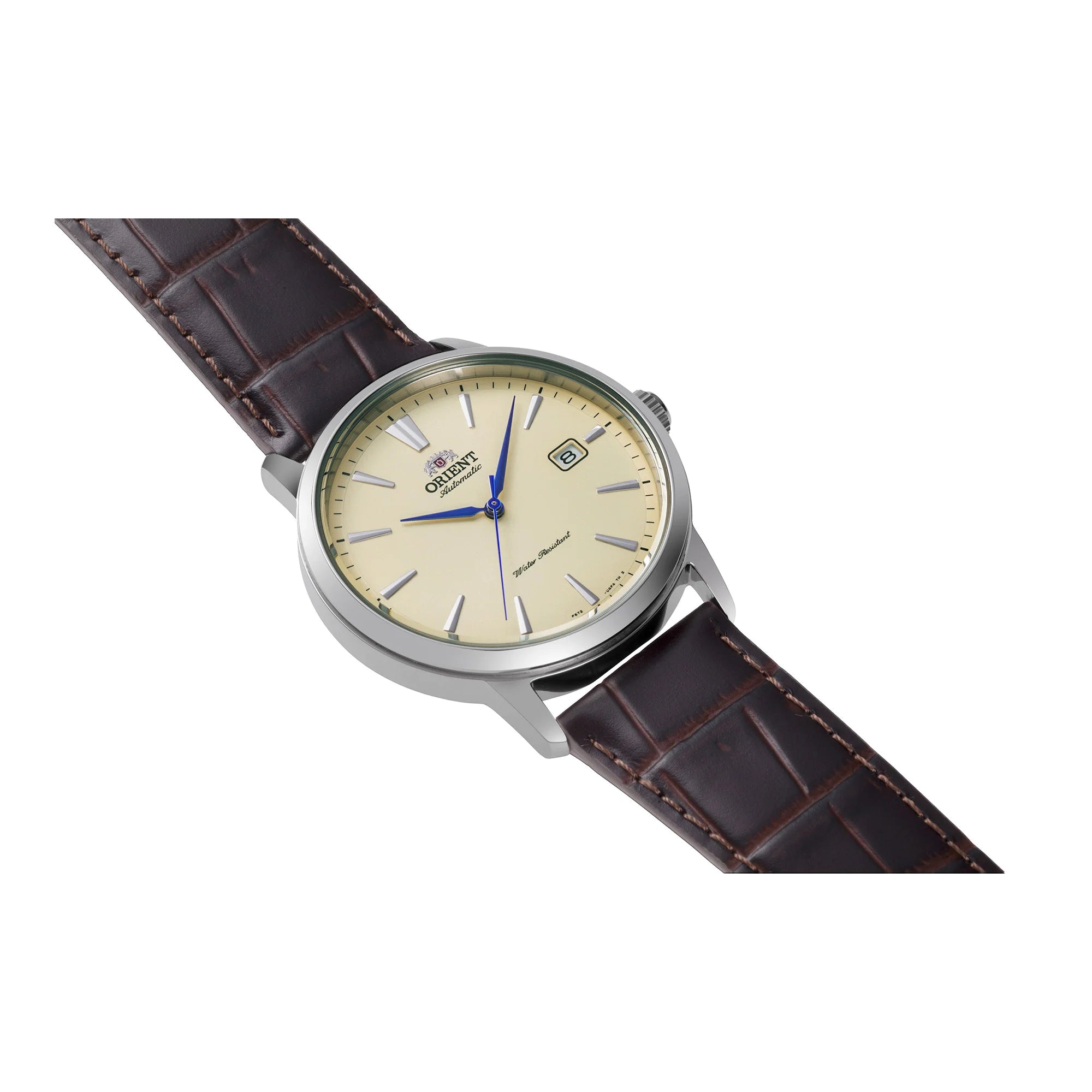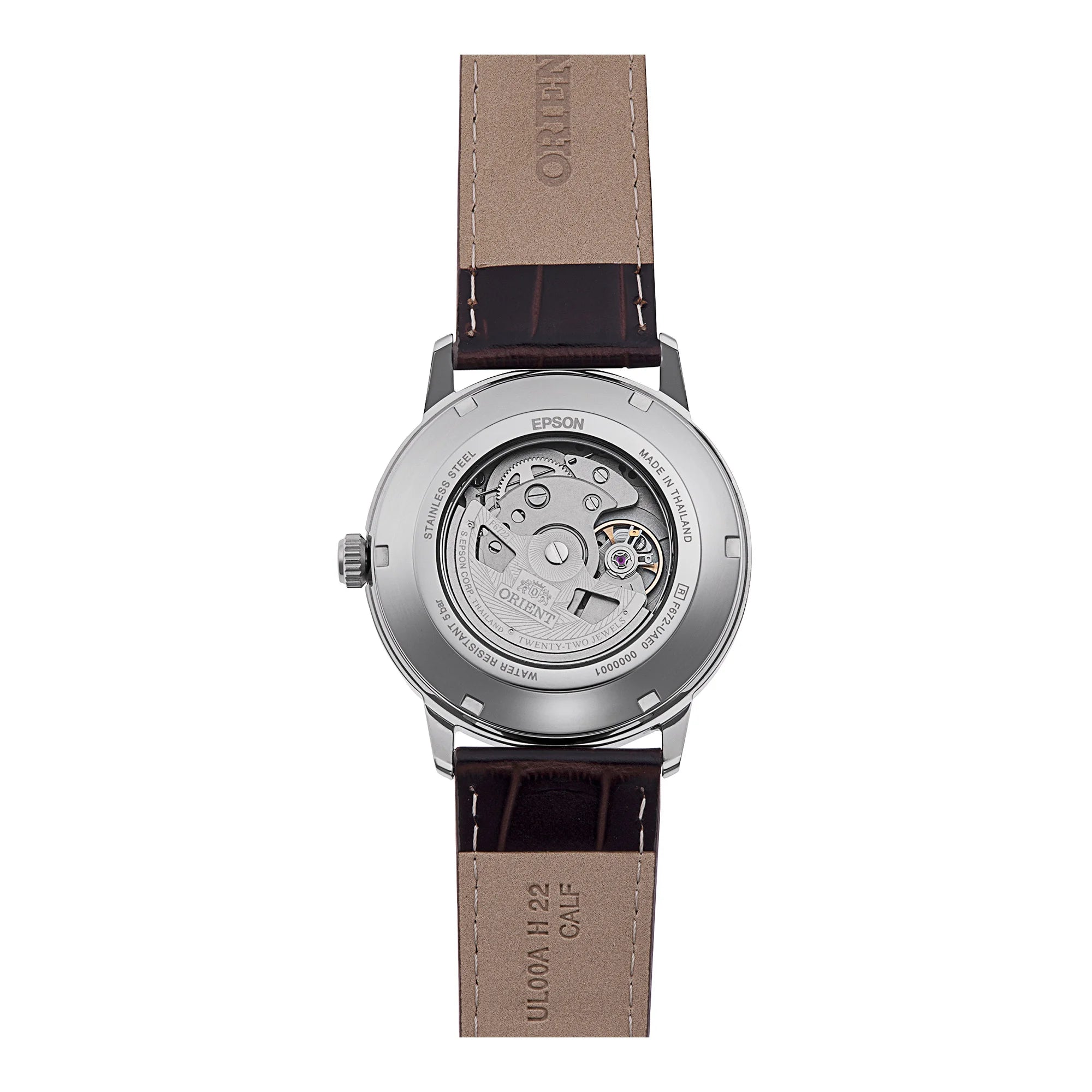 Erleben Sie mühelose Eleganz mit der Orient Symphony III. Dies ist nicht nur eine legere Herrenuhr, sondern ein Ausdruck stillen Selbstvertrauens. Ihr warmes beiges Zifferblatt und das reichhaltige schokoladenbraune Lederband strahlen zeitlosen Reiz aus, während das faszinierende automatische Uhrwerk, sichtbar durch den durchsichtigen Gehäuseboden, eine Seele reiner japanischer Präzision offenbart. Tragen Sie sie und spüren Sie, wie sich der Rhythmus Ihrer eigenen Geschichte entfaltet, von sonnenbeschienenen Morgen bis zu abendlichen Besinnungen.