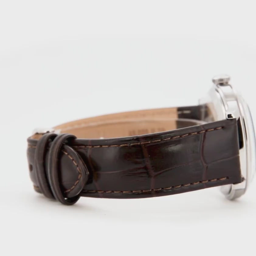 Im Reich zeitloser Eleganz erscheint die ORIENT AC0M Bambino 38mm als ein Leuchtturm klassischer Raffinesse. Im Herzen der horologischen Tradition gefertigt, verkörpert diese Uhr das Wesen eines verfeinerten Designs mit ihrem runden, silbergrauen Gehäuse, das einen Durchmesser von 38 mm elegant umschließt. Das Mineralglas bietet ein klares Fenster in die Seele dieses Zeitmessers, wo ein beiges Zifferblatt als Leinwand für den kunstvollen Tanz von drei Zeigern dient, angetrieben von der Präzision des Kalibers F6724. Mit 22 sorgfältig platzierten Steinen ist das Uhrwerk eine Symphonie mechanischer Meisterschaft und bietet sowohl Handaufzugs- als auch Automatikfunktionen. Das schokoladenbraune Lederarmband, gesichert mit einer Dornschließe, umschließt das Handgelenk mit einer warmen Umarmung, während der transparente Boden das filigrane Ballett von Zahnrädern und Federn offenbart. Die Wasserdichtigkeit stellt sicher, dass diese Uhr ebenso praktisch wie schön ist und bereit, Sie durch die Abenteuer des Lebens zu begleiten. Der Datumsanzeiger fügt einen Hauch von Praktikabilität hinzu, nahtlos in das Design integriert. Diese ORIENT Classic Uhr ist nicht nur ein Zeitmesser, sondern ein Stil-Statement und ein Zeugnis der beständigen Anziehungskraft klassischer Uhrmacherkunst.
