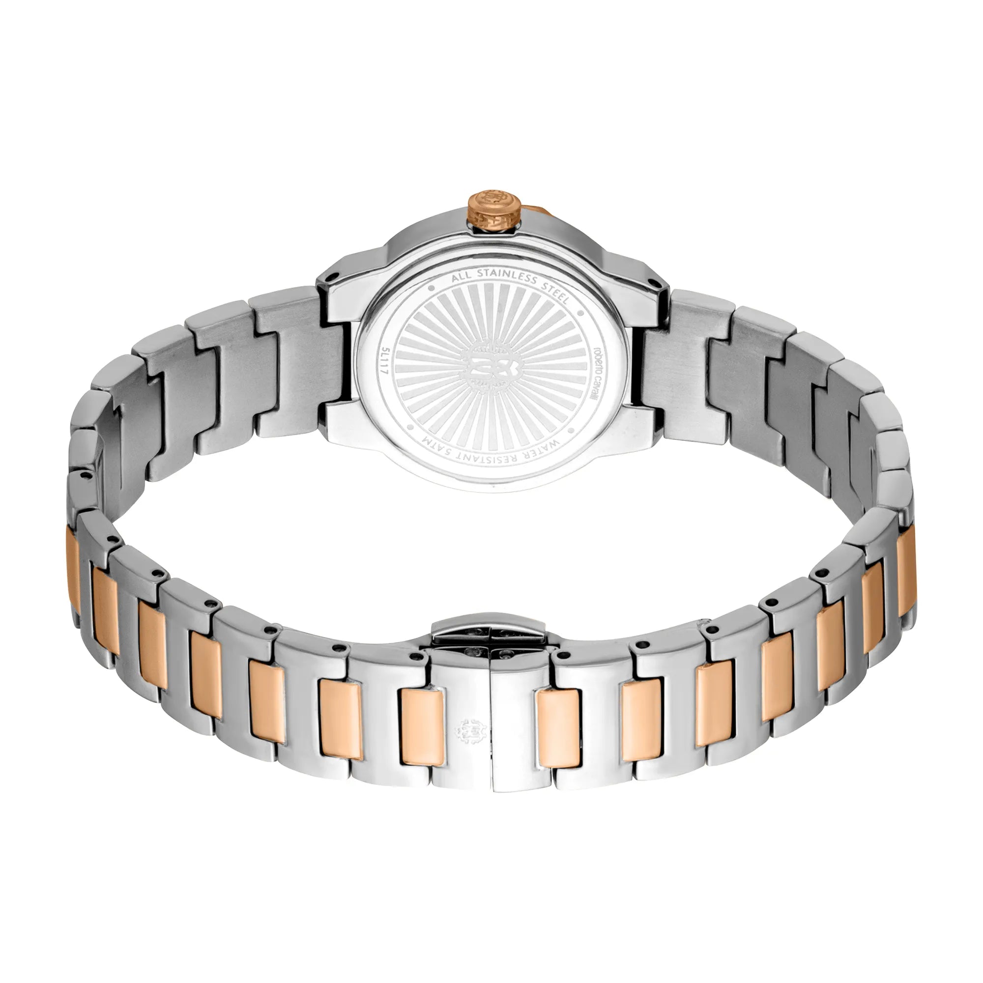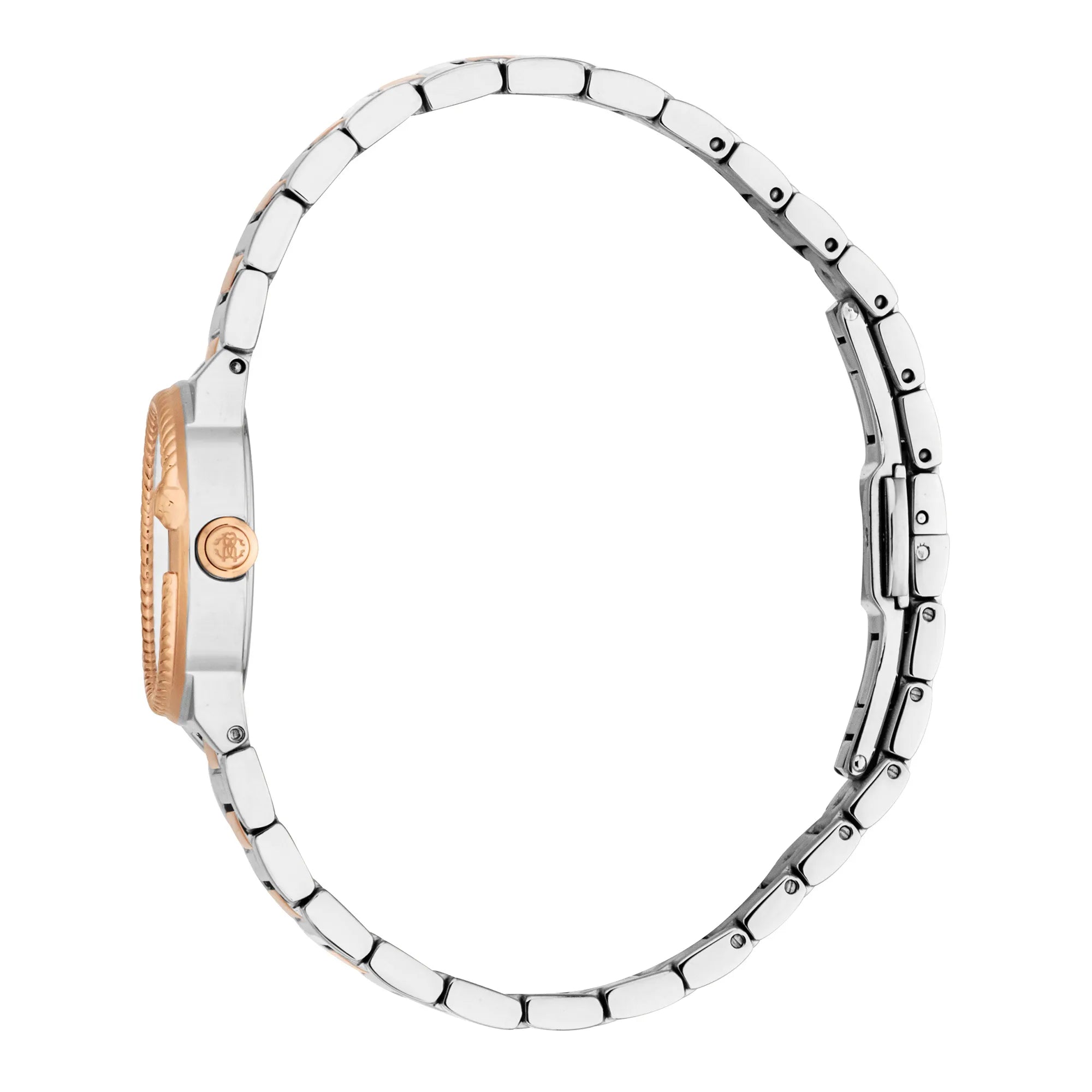 In der Welt der Mode, in der Eleganz auf Innovation trifft, entsteht eine Uhr, die das Wesen von Raffinesse und Stil verkörpert. Gefertigt im Herzen der Schweizer Uhrmacherkunst, ist diese Roberto Cavalli Lady Uhr ein Zeugnis für verfeinertes Design und zeitlose Anziehungskraft. Ihr rundes Gehäuse, getaucht in ein glänzendes Silbergrau, fängt das Licht bei jeder Bewegung ein und schafft einen Tanz der Reflexionen, der sowohl fesselnd als auch subtil ist. Mit einem Gehäusedurchmesser von 26 mm sitzt sie anmutig am Handgelenk, ein perfekter Begleiter für die moderne Frau, die sowohl Form als auch Funktion schätzt. Das Mineralglas bietet ein klares Fenster zur Seele der Uhr, wo das silbergraue Zifferblatt, geschmückt mit drei Zeigern, eine Geschichte von Präzision und Anmut erzählt. Das Edelstahlarmband, ebenfalls in Silbergrau, umschließt das Handgelenk mit einem Gefühl von Kontinuität und Harmonie, gesichert durch eine Butterfly-Faltschließe mit Druckknopf für Komfort und Sicherheit. Bis zu 50 Meter wasserdicht, ist diese Uhr so vielseitig wie schön und bereit, Sie vom Konferenzraum bis zum Ballsaal zu begleiten. Angetrieben von einem Quarzwerk mit einem GL32-Kaliber, verspricht sie Zuverlässigkeit und Genauigkeit und stellt sicher, dass Sie immer pünktlich sind, egal wohin Ihr Tag Sie führt. Diese Roberto Cavalli Lady Uhr ist mehr als nur eine Uhr, sie ist ein Statement der Eleganz, ein Spiegelbild Ihres tadellosen Geschmacks und eine Feier der Kunst der Uhrmacherei.