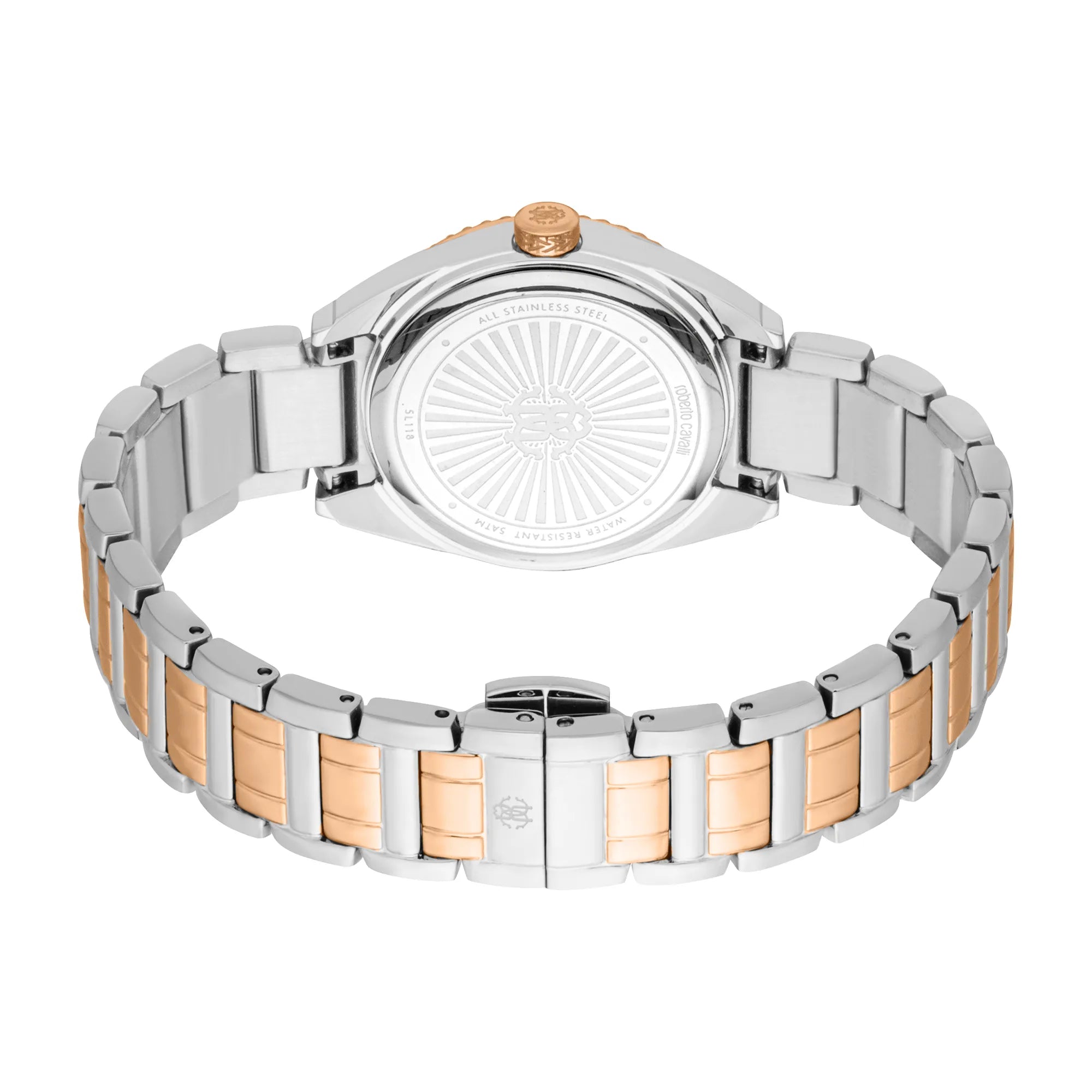 In der Welt der Mode, in der Eleganz auf Innovation trifft, entsteht eine Uhr, die das Wesen von Raffinesse und Stil verkörpert. Gefertigt im Herzen der Schweizer Uhrmacherkunst, ist diese Roberto Cavalli Lady Uhr ein Zeugnis für verfeinertes Design und zeitlose Anziehungskraft. Ihr rundes Gehäuse, getaucht in ein glänzendes Silbergrau, fängt das Licht bei jeder Bewegung ein und schafft ein Spiel von Reflexionen, das schlichtweg faszinierend ist. Mit einem Gehäusedurchmesser von 30 mm sitzt sie anmutig am Handgelenk, ein perfekter Begleiter für die moderne Frau, die sowohl Form als auch Funktion schätzt. Das Mineralglas bietet ein klares Fenster zur Seele der Uhr und schützt das filigrane silbergraue Zifferblatt darunter. Das Zifferblatt mit seiner Drei-Zeiger-Anzeige, angetrieben von einem präzisen Quarzwerk, ist eine Leinwand der Eleganz, auf der die Zeit mit Anmut und Präzision angezeigt wird. Das Edelstahlarmband, ebenfalls in passendem Silbergrau, schmiegt sich mit einem Gefühl von Kontinuität und Harmonie um das Handgelenk und wird durch eine Butterfly-Faltschließe mit Druckknopf für Komfort und Leichtigkeit gesichert. Bis zu 50 Meter wasserdicht, ist diese Uhr so vielseitig wie schön und bereit, Sie vom Konferenzraum bis zum Abendessen zu begleiten. Die Pull-&-Push-Krone fügt einen Hauch von Praktikabilität hinzu und ermöglicht einfache Einstellungen. Diese Roberto Cavalli Lady Uhr ist mehr als nur ein Zeitmesser, sie ist ein Stil-Statement, ein Spiegelbild des tadellosen Geschmacks der Trägerin und eine Feier der Kunst der Uhrmacherei.