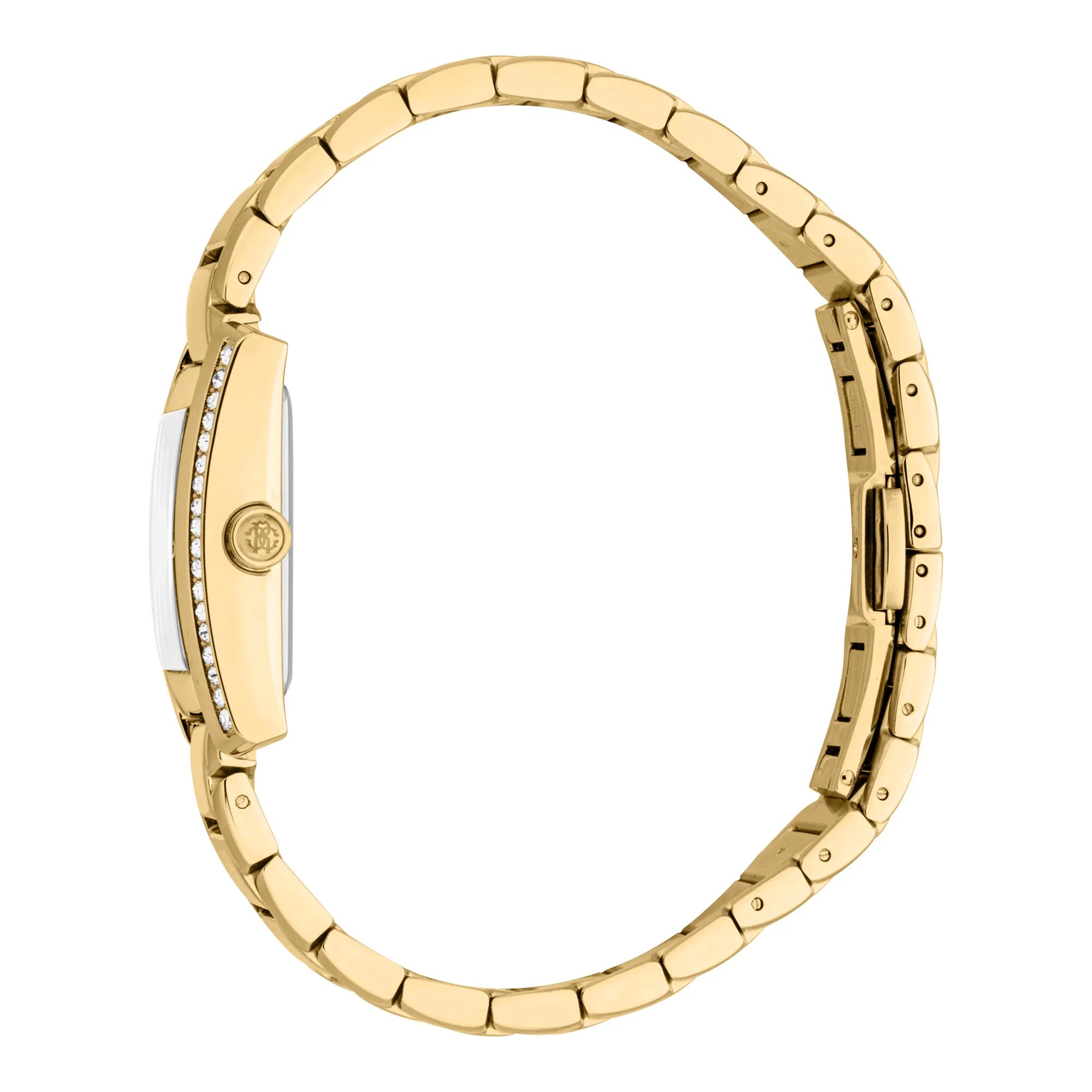 In der Welt der High Fashion, wo Eleganz auf Innovation trifft, entsteht eine Uhr, die das Wesen von Raffinesse und Stil verkörpert. In der Schweiz gefertigt, ist diese Roberto Cavalli Lady Uhr ein Zeugnis für das Engagement der Marke für Luxus und Präzision. Das rechteckige Gehäuse, getaucht in einen üppigen Gelbgoldton, strahlt eine zeitlose Anziehungskraft aus, die Auge und Fantasie fesselt. Ihr Mineralglas bietet ein klares Fenster zur Welt der Zeit, während die Pull & Push Krone eine mühelose Einstellung gewährleistet. Das Edelstahlarmband, ebenfalls in passendem Gelbgold, umschließt das Handgelenk mit Anmut und Sicherheit, dank seiner Butterfly-Faltschließe mit Druckknopfmechanismus. Das silbergraue Zifferblatt, zurückhaltend und doch auffällig, dient als perfekte Kulisse für die drei Zeiger, die mit Quarzpräzision gleiten, angetrieben vom GL34 Kaliber. Wasserresistent ist diese Uhr nicht nur ein Mode-Statement, sondern ein zuverlässiger Begleiter für die moderne Frau, die sowohl Form als auch Funktion schätzt. Mit ihrem raffinierten Design und exquisiten Details ist diese Roberto Cavalli Lady Uhr mehr als ein Accessoire, sie ist eine Feier der Weiblichkeit und Eleganz, ein Stück, das das Herz derjenigen anspricht, die es wagen zu träumen und mutig zu leben.