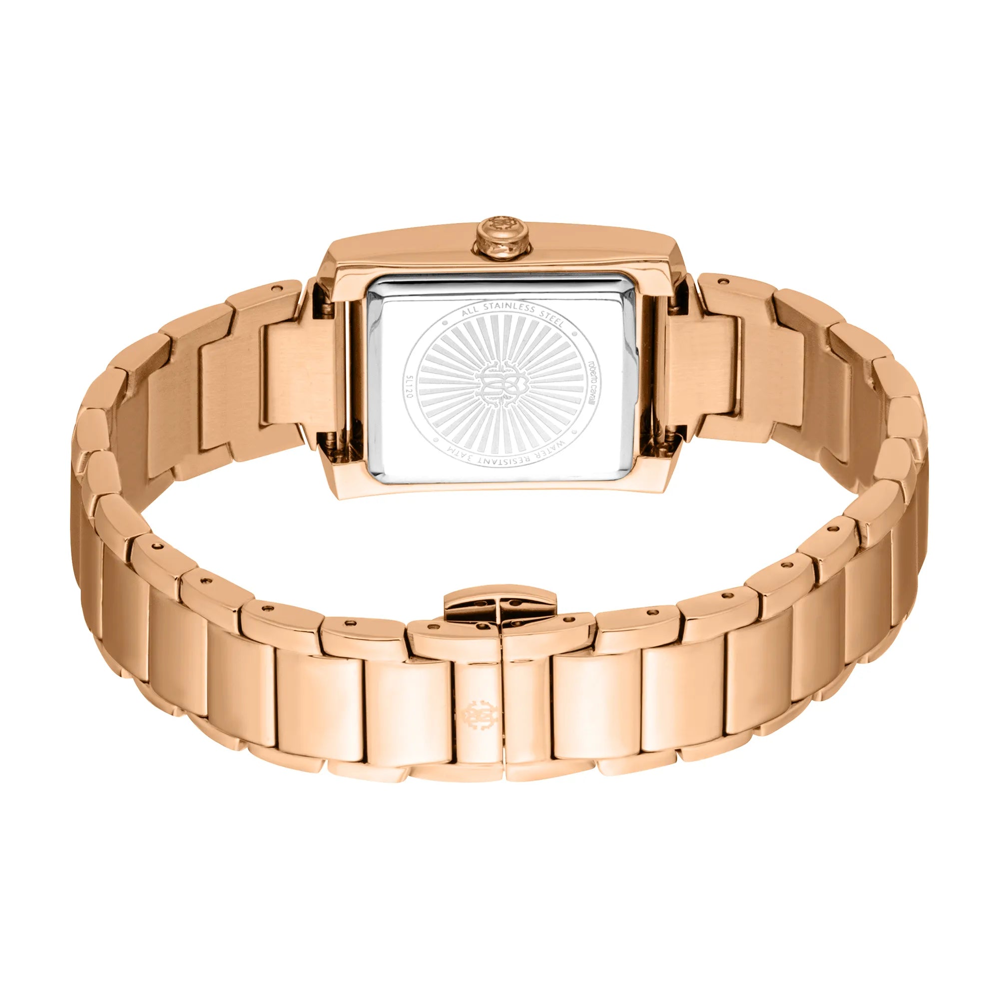 In der Welt der Mode, in der Eleganz auf Innovation trifft, entsteht eine Uhr, die das Wesen von Raffinesse und Stil einfängt. Gefertigt im Herzen der Schweizer Uhrmacherkunst, ist diese Roberto Cavalli Lady Uhr ein Zeugnis für verfeinertes Design und exquisite Handwerkskunst. Ihr rechteckiges Gehäuse, getaucht in den warmen Glanz von Roségold, strahlt eine zeitlose Anziehungskraft aus, die sowohl modern als auch klassisch ist. Das Mineralglas bietet einen klaren Blick auf das silbergraue Zifferblatt, auf dem drei Zeiger anmutig tanzen, angetrieben von der Präzision eines Quarzwerks mit GL34 Kaliber. Die Pull & Push Krone fügt einen Hauch von Praktikabilität hinzu und sorgt für einfache Handhabung, ohne die Eleganz zu beeinträchtigen. Das Handgelenk umschließend mit einem Edelstahlarmband, ebenfalls in Roségold, wird diese Uhr mit einer Butterfly-Faltschließe mit Druckknopf gesichert, die sowohl Sicherheit als auch Stil bietet. Wasserbeständig, ist sie dafür entworfen, die moderne Frau durch alle Facetten ihres Tages zu begleiten, von den belebten Straßen der Stadt bis zu ruhigen Abendgesellschaften. Diese Roberto Cavalli Uhr ist mehr als nur ein Zeitmesser, sie ist ein Statement für modebewusstes Denken, eine Feier der Weiblichkeit und ein Symbol für den tadellosen Geschmack der Trägerin.