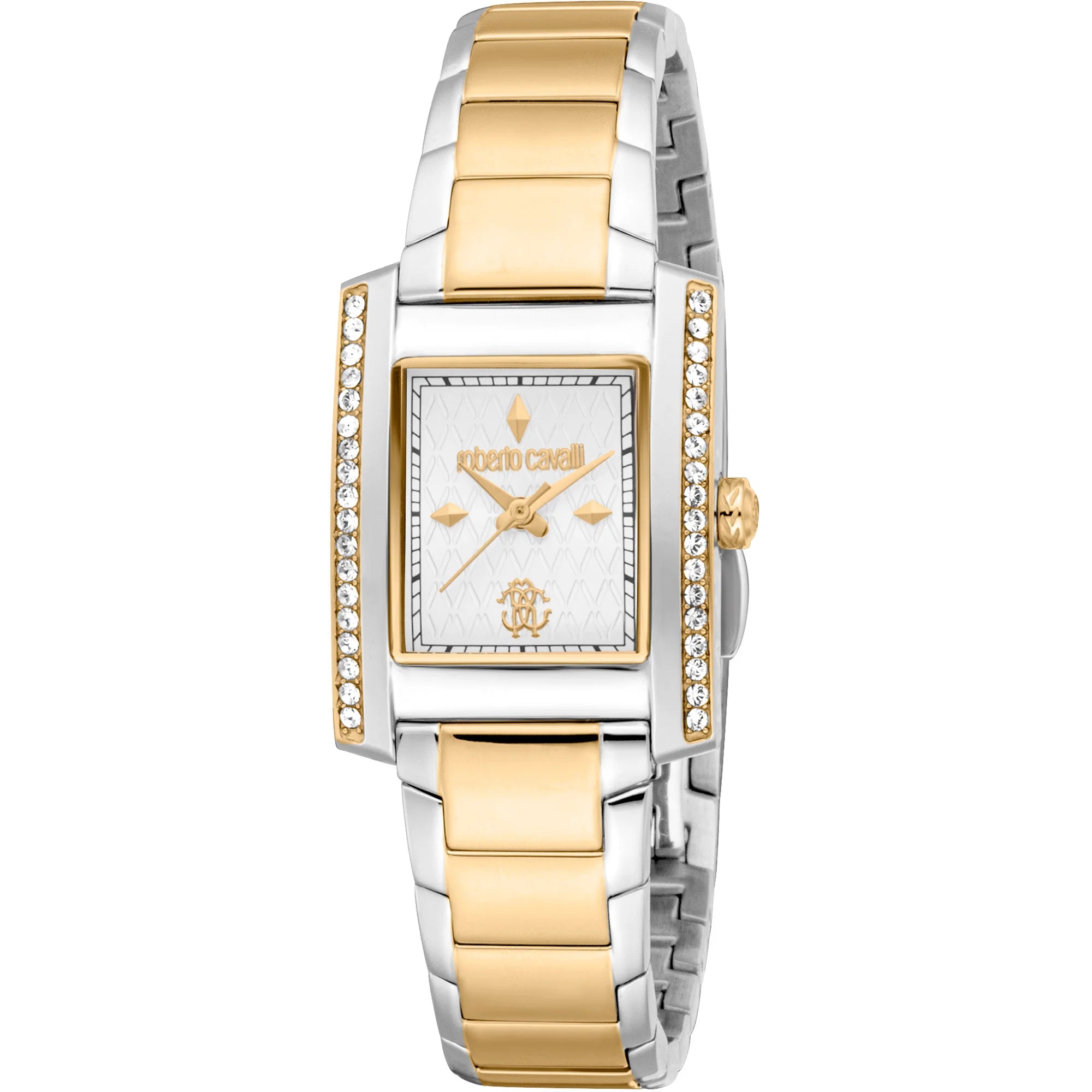 In der Welt der High Fashion, wo Eleganz auf Innovation trifft, entsteht eine Uhr, die das Wesen von Raffinesse und Stil verkörpert. Gefertigt im Herzen der Schweizer Uhrmacherkunst, ist diese Roberto Cavalli Lady Uhr ein Zeugnis für verfeinertes Design und zeitlose Anziehungskraft. Das rechteckige Gehäuse, getaucht in einen eleganten silbergrauen Farbton, strahlt einen modernen und zugleich klassischen Charme aus, der perfekt das anmutige Handgelenk der zeitgenössischen Frau ergänzt. Ihr Mineralglas bietet ein klares Fenster zur Welt der Präzision, wo das Drei-Zeiger-Quarzwerk, angetrieben vom Kaliber GL34, eine tadellose Zeitmessung gewährleistet. Das Zifferblatt in harmonischem Silbergrau spiegelt eine subtile Eleganz wider, die mit dem modebewussten Geist harmoniert. Das Handgelenk umschließt ein luxuriöses Edelstahlarmband, vergoldet in strahlendem Gelbgold, das jedem Blick einen Hauch von Opulenz verleiht. Die Schmetterlingsfaltschließe mit Druckknopfverschluss sorgt nicht nur für einen sicheren Sitz, sondern unterstreicht auch das nahtlose Design der Uhr. Wasserresistent ist diese Uhr ebenso praktisch wie schön und bereit, ihre Trägerin durch die vielfältigen Abenteuer des Lebens zu begleiten. Mit einem Gewicht von nur 83 Gramm bietet sie eine bequeme und dennoch präsente Erscheinung, die sie zum perfekten Accessoire für jeden Anlass macht. Diese Roberto Cavalli Lady Uhr ist mehr als nur eine Uhr, sie ist ein Statement der Eleganz, eine Feier der Weiblichkeit und ein Symbol für die dauerhafte Anziehungskraft der Mode.