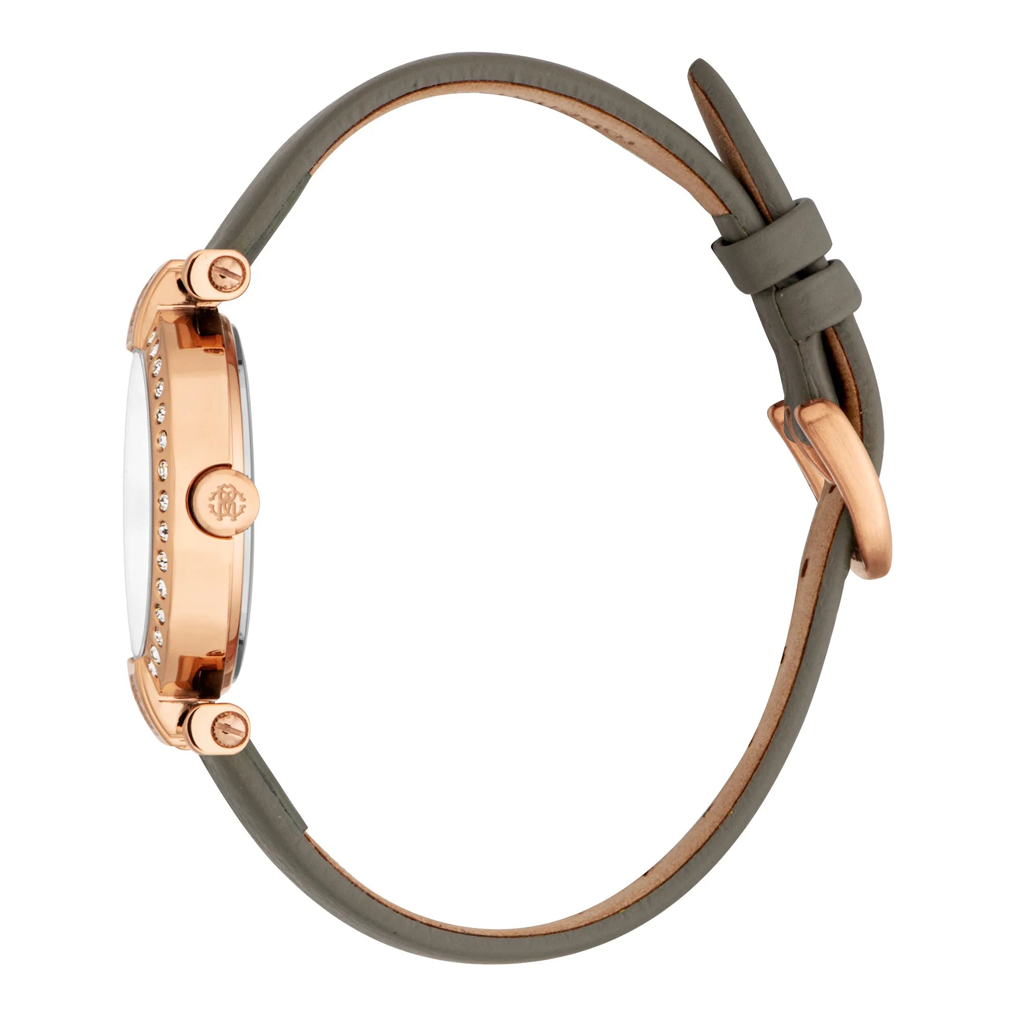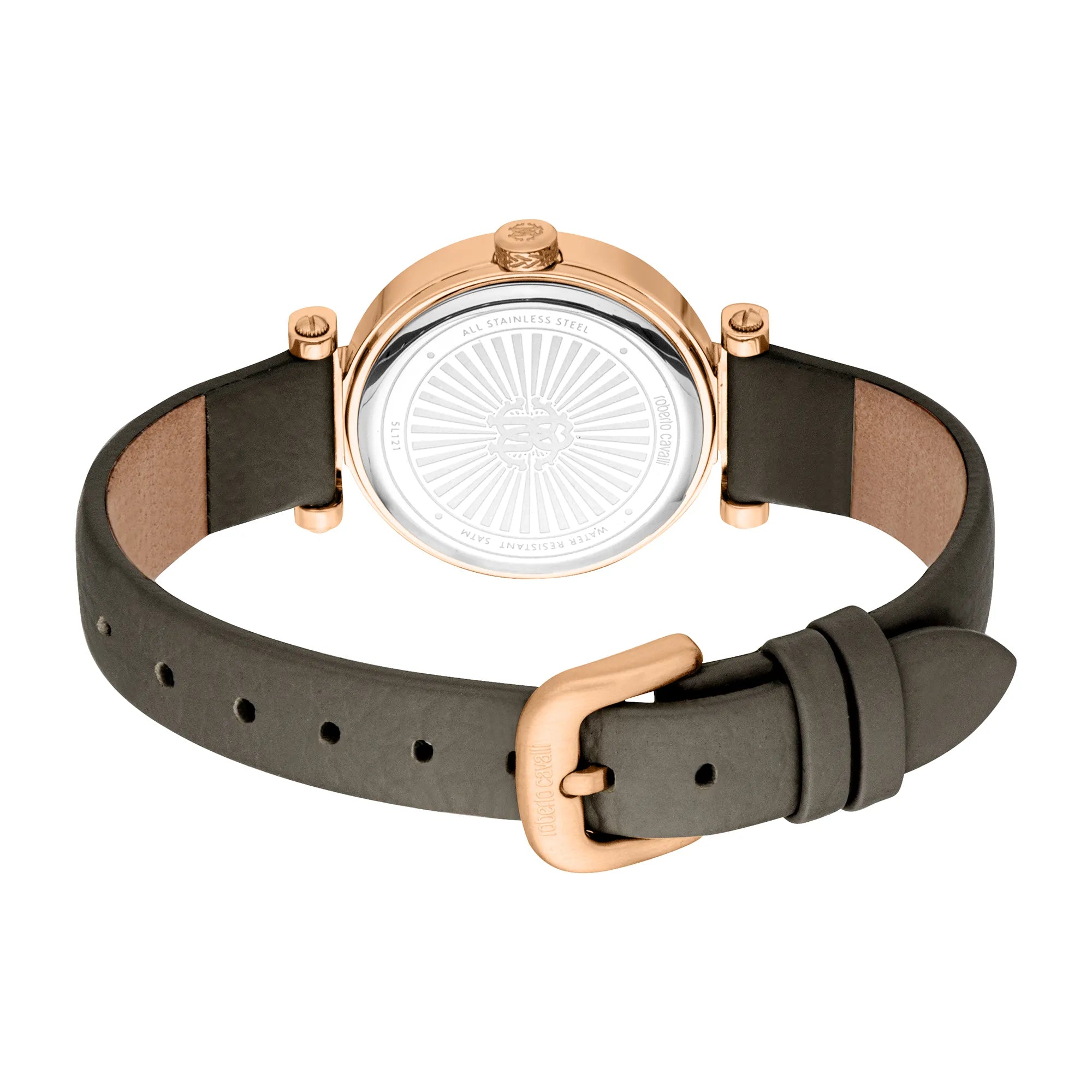 In der Welt der Mode, in der Eleganz auf Innovation trifft, entsteht eine Uhr, die das Wesen von Raffinesse und Stil einfängt. Gefertigt im Herzen der Schweizer Uhrmacherkunst, ist diese Roberto Cavalli Lady Uhr ein Zeugnis für verfeinertes Design und exquisite Handwerkskunst. Das runde Gehäuse, getaucht in einen luxuriösen Roségoldton, strahlt ein warmes Leuchten aus, das das zarte Handgelenk seiner Trägerin ergänzt. Mit einem Gehäusedurchmesser von 30 mm findet sie die perfekte Balance zwischen Zurückhaltung und Präsenz und ist somit ein ideales Accessoire für die moderne Frau. Das Mineralglas schützt ein silbergraues Zifferblatt, auf dem drei Zeiger anmutig tanzen, angetrieben von der Präzision eines Quarzwerks mit GL34-Kaliber. Die Pull-&-Push-Krone bietet eine einfache Einstellung und sorgt dafür, dass die Zeit immer auf Ihrer Seite ist. Das Handgelenk umschließt ein mausgraues Lederband, das mit einer Dornschließe gesichert ist und sowohl Komfort als auch Stil bietet. Mit einer Wasserdichtigkeit von bis zu 50 Metern ist diese Uhr so vielseitig wie schön und bereit, Sie vom Konferenzraum bis zum Abendessen zu begleiten. Die Roberto Cavalli Lady Uhr ist mehr als nur eine Uhr, sie ist ein Mode-Statement, ein Spiegelbild des tadellosen Geschmacks der Trägerin und eine Feier zeitloser Eleganz.