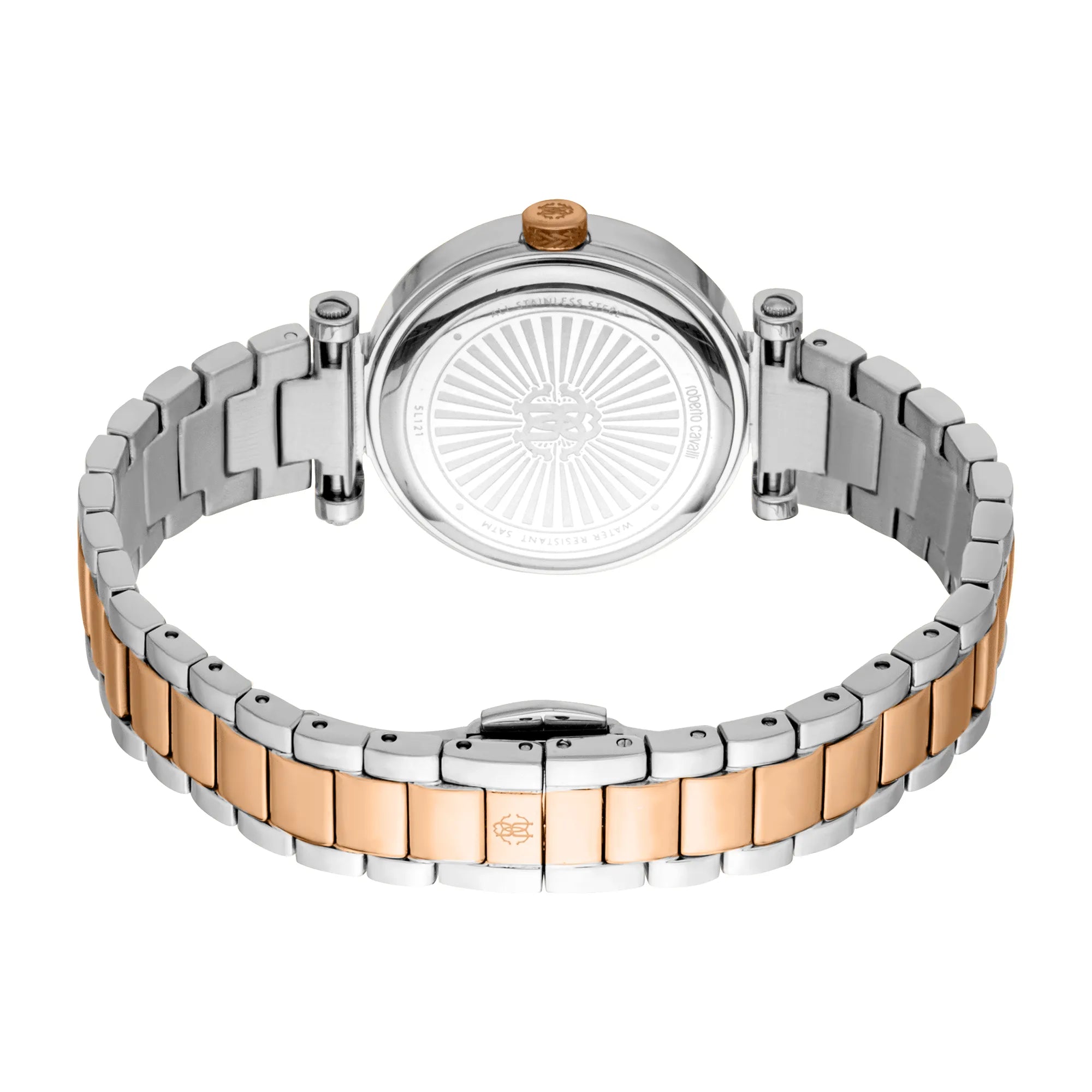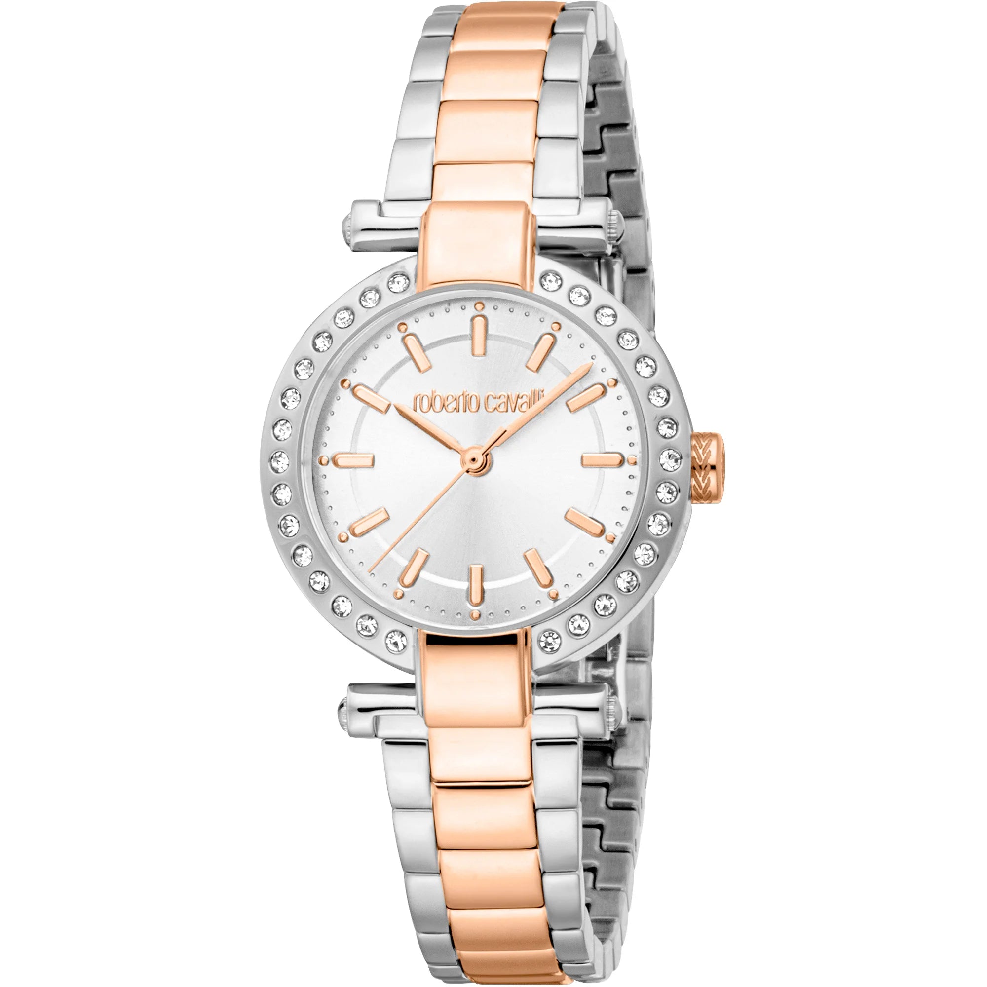 In der Welt der Mode, in der Eleganz auf Innovation trifft, entsteht eine Uhr, die das Wesen von Raffinesse und Stil einfängt. Gefertigt im Herzen der Schweizer Uhrmacherkunst, ist diese Roberto Cavalli Lady Uhr ein Zeugnis für verfeinertes Design und exquisite Handwerkskunst. Ihr rundes Gehäuse, getaucht in einen eleganten silbergrauen Farbton, ergänzt perfekt das schimmernde roségoldene Edelstahlarmband und schafft eine harmonische Verbindung von Modernität und klassischem Reiz. Der Gehäusedurchmesser von 30 mm bietet eine zarte, aber dennoch markante Präsenz am Handgelenk und macht sie zu einem idealen Accessoire für die zeitgenössische Frau, die sowohl Form als auch Funktion schätzt. Mit einer Wasserdichtigkeit von bis zu 50 Metern ist diese Uhr so vielseitig wie schön und bereit, Sie vom Konferenzraum bis zum Wochenendausflug zu begleiten. Das Mineralglas schützt das silbergraue Zifferblatt, auf dem drei Zeiger anmutig tanzen, angetrieben von einem präzisen Quarzwerk mit einem GL34-Kaliber. Die Faltschließe mit Drücker sorgt für einen sicheren und bequemen Sitz, während die Pull & Push-Krone diesem modischen Stück einen Hauch von Praktikabilität verleiht. Diese Roberto Cavalli Lady Uhr ist mehr als nur ein Zeitmesser, sie ist ein Statement der Eleganz und eine Feier des Geistes der modernen Frau.