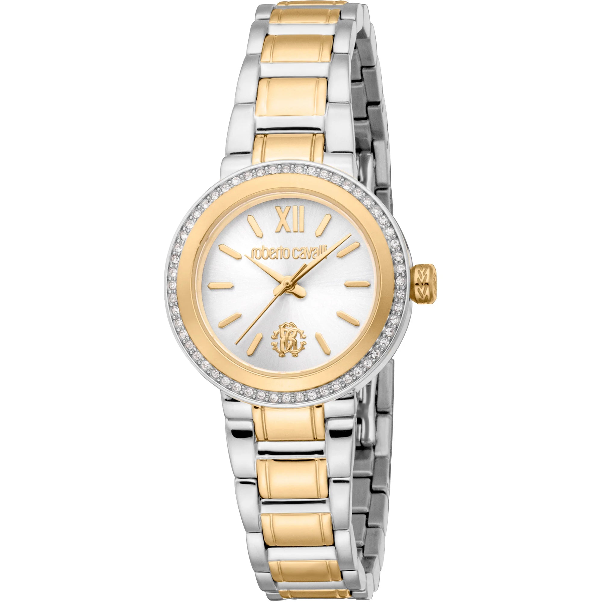 Ein Tanz aus silbergrau und gelbgold, diese Roberto Cavalli Lady Uhr fängt die Essenz zeitloser Mode ein. Das 28mm runde Gehäuse umschließt ein silbergraues Zifferblatt, das zurückhaltende Eleganz ausstrahlt. Ihr Edelstahlarmband, gesichert mit einer Butterfly-Faltschließe, verspricht sowohl Stil als auch Komfort, während die WR 50mt Wasserdichtigkeit Widerstandsfähigkeit gewährleistet.