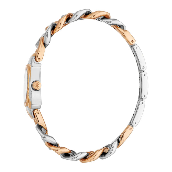 In der Welt der Mode, in der Eleganz auf Innovation trifft, entsteht eine Uhr, die das Wesen von Raffinesse und Stil verkörpert. Gefertigt im Herzen der Schweizer Uhrmacherkunst, ist diese Roberto Cavalli Lady Uhr ein Zeugnis für ausgefeiltes Design und exquisite Handwerkskunst. Ihre unregelmäßige Gehäuseform, getaucht in ein glänzendes Silbergrau, fängt das Licht in einem Tanz subtiler Reflexionen ein und macht sie zu einem echten Statement-Stück für die moderne Frau. Das Edelstahlarmband, ebenfalls in passendem Silbergrau, umschließt das Handgelenk mit Anmut und Haltung, gesichert durch eine Schmuckschließe, die von zeitloser Eleganz zeugt. Unter dem Mineralglas spiegelt das Zifferblatt den silbergrauen Farbton des Gehäuses wider und schafft eine nahtlose Harmonie, die sowohl zurückhaltend als auch fesselnd ist. Mit einer Wasserdichtigkeit von bis zu 50 Metern ist diese Uhr ebenso praktisch wie schön und bereit, Sie auf den Abenteuern des Lebens zu begleiten. Das Quarzwerk, angetrieben vom Kaliber GL22, sorgt für Präzision und Zuverlässigkeit, während die Zwei-Zeiger-Anzeige einen minimalistischen Ansatz zur Zeitmessung bietet. Diese Roberto Cavalli Uhr ist nicht nur ein Accessoire, sondern eine Feier der Weiblichkeit und Mode, ein Stück, das mit jedem Ticken Luxus und Raffinesse flüstert.
