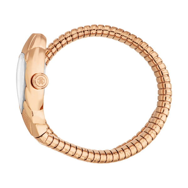 In der Welt der High Fashion, wo Eleganz auf Innovation trifft, entsteht eine Uhr, die das Wesen von Raffinesse und Stil einfängt. Gefertigt im Herzen der Schweizer Uhrmacherkunst, ist diese Roberto Cavalli Lady Uhr ein Zeugnis für verfeinertes Design und zeitlose Anziehungskraft. Das ovale Gehäuse, getaucht in einen luxuriösen Roségoldton, strahlt einen Hauch von Opulenz aus, der sowohl fesselnd als auch zurückhaltend ist. Ihr Mineralglas bietet ein klares Fenster in eine Welt der Präzision, wo das silbergraue Zifferblatt als Leinwand für den kunstvollen Tanz von drei Zeigern dient, angetrieben von einem zuverlässigen Quarzwerk. Das Kaliber GL24 sorgt dafür, dass jeder Tick ein Flüstern von Genauigkeit ist, ein Versprechen von Zuverlässigkeit. Die Pull & Push-Krone fügt einen Hauch von Praktikabilität hinzu und verbindet nahtlos Form und Funktion. Das das Handgelenk mit Anmut umschließende Edelstahlarmband, ebenfalls in Roségold, spiegelt die Eleganz des Gehäuses wider und schafft eine harmonische Symphonie aus Farbe und Textur. Wasserresistent ist diese Uhr nicht nur ein Accessoire, sondern ein Begleiter für die Abenteuer des Lebens, bereit, den Elementen zu trotzen und dabei ihren exquisiten Charme zu bewahren. Entworfen für die moderne Frau, die Mode und Funktionalität schätzt, ist diese Roberto Cavalli Lady Uhr mehr als ein Zeitmesser, sie ist ein Statement der Identität, ein Spiegelbild des einzigartigen Stils und der Anmut der Trägerin.