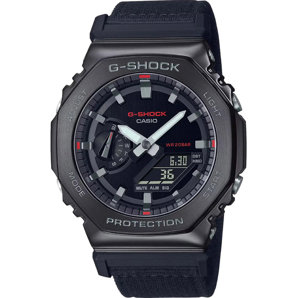 Im Bereich der Zeitmessung, wo Präzision auf Abenteuer trifft, entsteht eine Uhr, die den Geist von Widerstandsfähigkeit und Erkundung verkörpert. Gefertigt im Herzen der Innovation, ist diese Casio G-Shock Uhr ein Zeugnis der dauerhaften Anziehungskraft des Militärstils. Ihr sechseckiges Gehäuse, gehüllt in ein elegantes Anthrazitgrau, zieht mit einem markanten Durchmesser von 44 mm alle Blicke auf sich und bietet ein raffiniertes Design, das den Strapazen der Tiefe mit einer Taucher-Wasserbeständigkeit von 200 Metern standhält. Das Mineralglas schützt ein digitales Display, das so vielseitig wie zuverlässig ist und einen umfassenden Kalender mit Tag, Datum, Monat und Jahr bietet. Das schwarze Stoffarmband, gesichert mit einer Dornschließe, ergänzt die robuste Ästhetik der Uhr, während die Pull & Push-Krone nahtlose Anpassungen ermöglicht. Angetrieben vom präzisen Quarzwerk und dem renommierten Kaliber 5611, ist diese Uhr mit einer Reihe von Funktionen ausgestattet, darunter ein Chronograph, Alarm, Timer und Weltzeit, die alle von einer eingebauten Beleuchtung erhellt werden. Diese Casio G-Shock ist nicht nur eine Uhr, sie ist ein Begleiter für diejenigen, die wagen, über das Gewöhnliche hinauszugehen, ein Symbol für Stärke und Raffinesse, das die Grenzen der Zeit herausfordert.