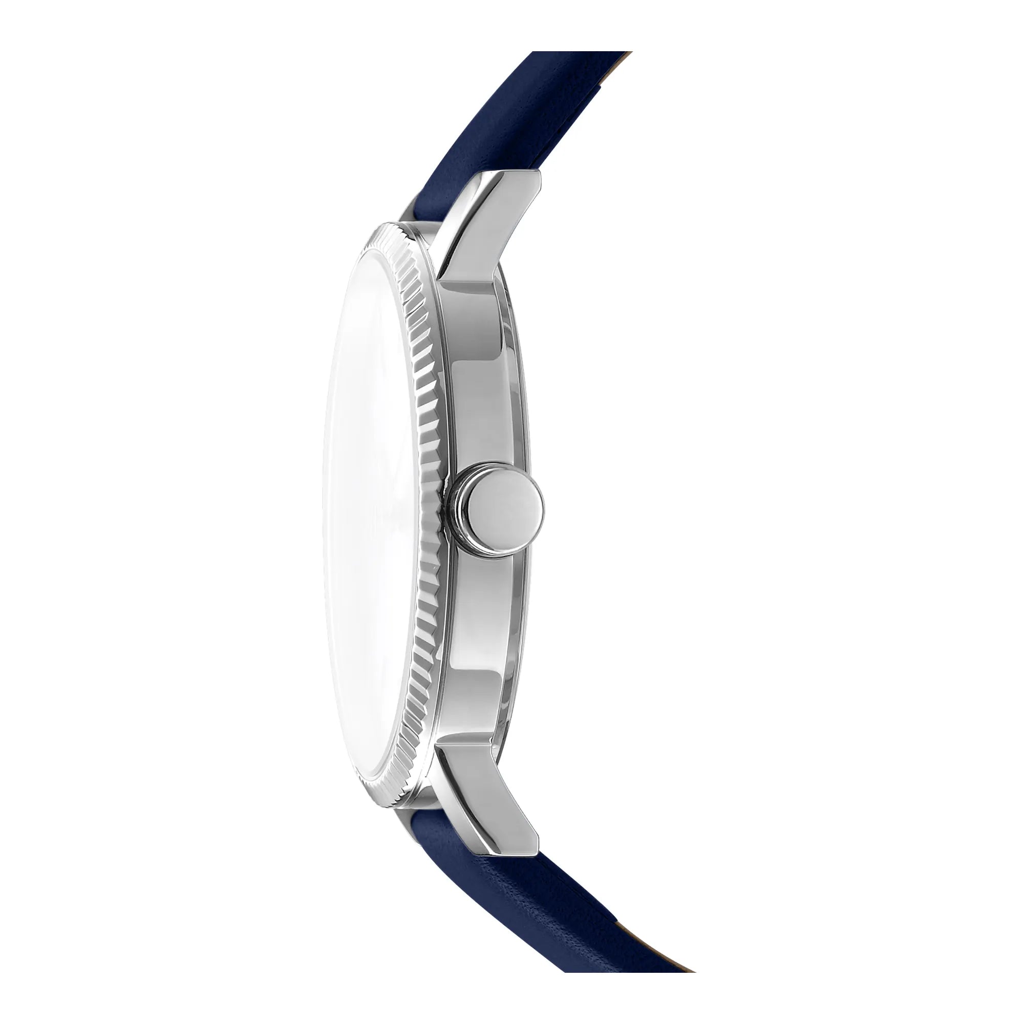 Im pulsierenden Herzen von New York City, wo Mode auf Funktion trifft, entsteht eine Uhr, die den Geist urbaner Eleganz verkörpert – die DKNY DK1L034 Soho Maxi. Mit Präzision und Stil gefertigt, ist diese Uhr ein Zeugnis für den dynamischen Lebensstil der modernen Frau. Ihr rundes Gehäuse, getaucht in einen eleganten silbergrauen Farbton, fängt die Essenz zeitgenössischen Chics ein, während der großzügige Durchmesser von 40 mm für eine dezente Selbstsicherheit sorgt. Das Mineralglas bietet einen klaren Blick auf das Zifferblatt, das den silbergrauen Ton des Gehäuses widerspiegelt und so eine harmonische Verbindung von Farbe und Design schafft. Das nachtblau Lederarmband, weich und dennoch robust, schmiegt sich mit einer Dornschließe um das Handgelenk und bietet sowohl Komfort als auch Sicherheit. Diese Uhr ist nicht nur ein Blickfang, sie ist darauf ausgelegt, den Anforderungen des Alltags mit einer Wasserdichtigkeit von bis zu 50 Metern standzuhalten. Das Quarzwerk sorgt für präzise Zeitmessung, während die Drei-Zeiger-Anzeige diesem modischen Stück einen klassischen Akzent verleiht. Die Pull-&-Push-Krone fügt eine praktische Note hinzu und macht Anpassungen mühelos. Die DKNY Soho Maxi ist mehr als eine Uhr, sie ist ein Statement für raffiniertes Design und urbane Sophistication – perfekt für die Frau, die die Stadt mit Anmut und Stil meistert.