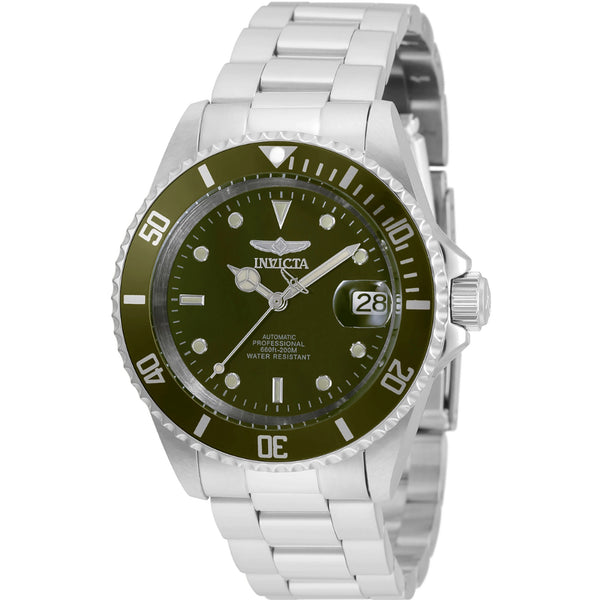 Umarmen Sie Ihren abenteuerlichen Geist mit der Invicta Pro Diver, einem Symbol für männliche Stärke und legere Eleganz. Das faszinierende grüne Zifferblatt, perfekt eingerahmt von einer passenden Lünette, zieht alle Blicke auf sich. Angetrieben von einem präzisen automatischen Uhrwerk, das durch den transparenten Gehäuseboden sichtbar ist, ist diese Uhr nicht nur ein Accessoire, sondern ein Ausdruck der Persönlichkeit. Spüren Sie das Selbstvertrauen, das sie verleiht, während Sie Ihre Welt erkunden – sei es beim Eintauchen in die Tiefen oder beim Meistern der täglichen Herausforderungen.