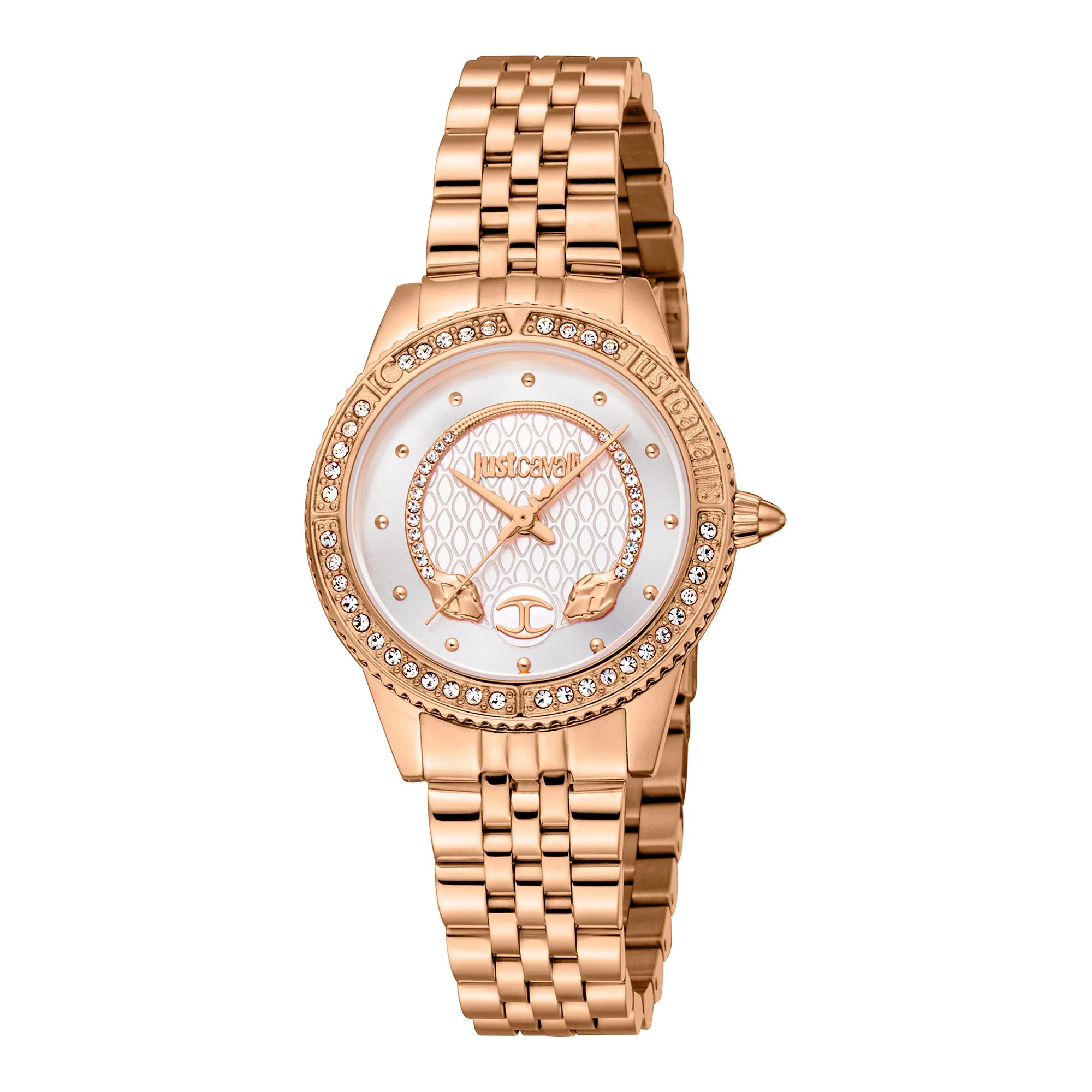 Im Bereich der Mode, wo Eleganz auf Kühnheit trifft, steht die Just Cavalli Uhr aus der Animalier Kollektion als Zeugnis für raffiniertes Design und mutigen Charakter. Gefertigt im Herzen des Stils, ist diese exquisite Uhr eine Feier der Weiblichkeit und Raffinesse. Ihr rundes Gehäuse, getaucht in den warmen Glanz von Roségold, fängt die Essenz modernen Luxus ein, während der Durchmesser von 30 mm eine zarte, aber auffällige Präsenz am Handgelenk gewährleistet. Das silbergraue Zifferblatt, eine Leinwand der Subtilität, ist mit drei Zeigern geschmückt, die mit der Präzision eines Quarzuhrwerks gleiten und eine nahtlose Verbindung von Funktionalität und Anmut bieten. Eingefasst in Mineralglas verspricht die Uhr Haltbarkeit, ohne Eleganz zu beeinträchtigen. Das Edelstahlarmband, ebenfalls in Roségold, umschließt das Handgelenk mit einer Butterfly-Faltschließe, die sowohl Sicherheit als auch Tragekomfort gewährleistet. Mit einer Wasserdichtigkeit von bis zu 50 Metern ist diese Uhr so vielseitig wie schön und bereit, Sie von den belebten Straßen der Stadt bis zu ruhigen Küstenausflügen zu begleiten. Die Pull & Push Krone fügt einen Hauch von Praktikabilität hinzu und macht Zeitumstellungen mühelos. Diese Just Cavalli Uhr ist nicht nur ein Accessoire, sondern ein Stil-Statement, ein Spiegelbild des mutigen Geistes, der die moderne Frau definiert.