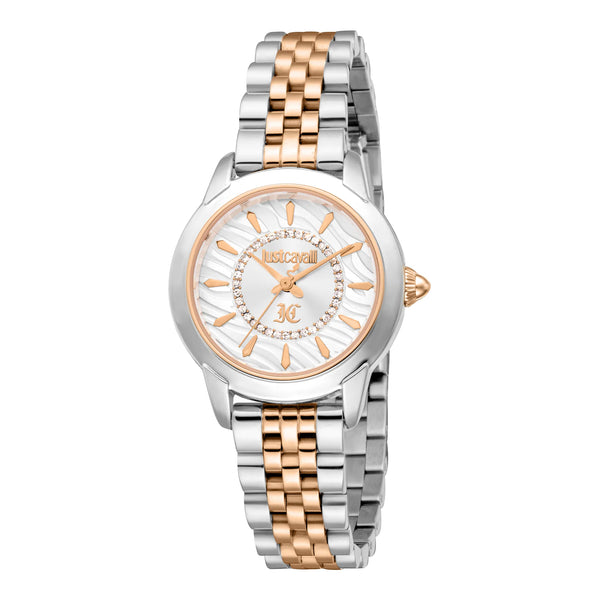 In der Welt der Mode, wo Eleganz auf Kühnheit trifft, entsteht eine Uhr, die das Wesen moderner Raffinesse einfängt. Diese Just Cavalli Uhr aus der illustren Just Cavalli Animalier Kollektion ist ein Zeugnis für das Engagement der Marke für Stil und Innovation. Gefertigt in einer edlen runden Form, strahlt das Gehäuse in einem luxuriösen Roségoldton und ergänzt perfekt das Edelstahlarmband, das das Handgelenk mit einem passenden Roségold-Reiz umschließt. Die Faltschließe mit Druckknopf sorgt für einen nahtlosen Sitz und verbindet Funktionalität mit Eleganz. Im Herzen dieser exquisiten Uhr liegt ein silbergraues Zifferblatt, eine Leinwand der Subtilität und Anmut, auf der drei Zeiger in einem präzisen Quarzwerk tanzen und den Zeitverlauf mühelos genau markieren. Das Mineralglas schützt das Zifferblatt, bietet Klarheit und Schutz, während die Pull & Push-Krone einen Hauch von Praktikabilität hinzufügt. Wasserbeständig ist diese Uhr für die Frau konzipiert, die das Leben mit Selbstvertrauen und Stil annimmt. Ihr Durchmesser von 30 mm ist eine perfekte Balance zwischen Präsenz und Zartheit und macht sie zu einem idealen Accessoire für jeden Anlass. Mit einem Gewicht von nur 56 Gramm sitzt sie leicht am Handgelenk, ein Flüstern von Luxus, das Bände spricht. Diese Just Cavalli Uhr ist nicht nur eine Uhr, sondern ein Statement für zukunftsorientiertes Denken in der Mode, eine Feier der Individualität und eine Hommage an den kühnen Geist derjenigen, die es wagen, aufzufallen.
