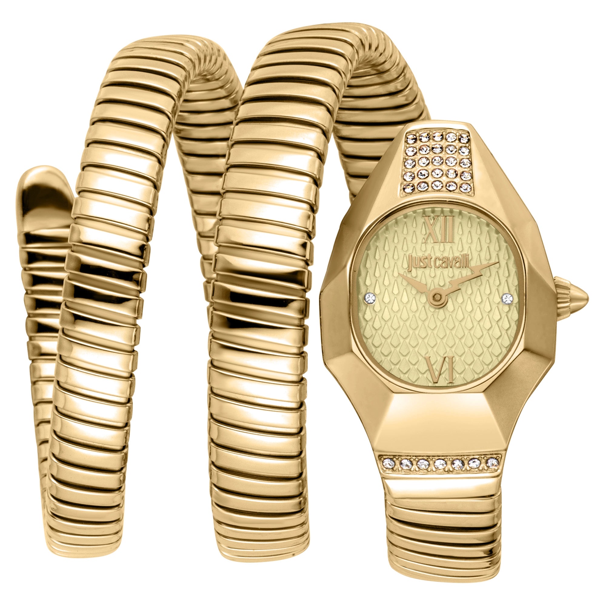 Unleash your inner goddess with the exquisite **Just Cavalli Lunara Yellow Gold Champagne Watch (JC1L397M0035)**, a stunning timepiece designed for the modern, fashion-forward woman. This captivating women's watch from the iconic **Just Cavalli Signature Snake** collection instantly elevates any outfit.