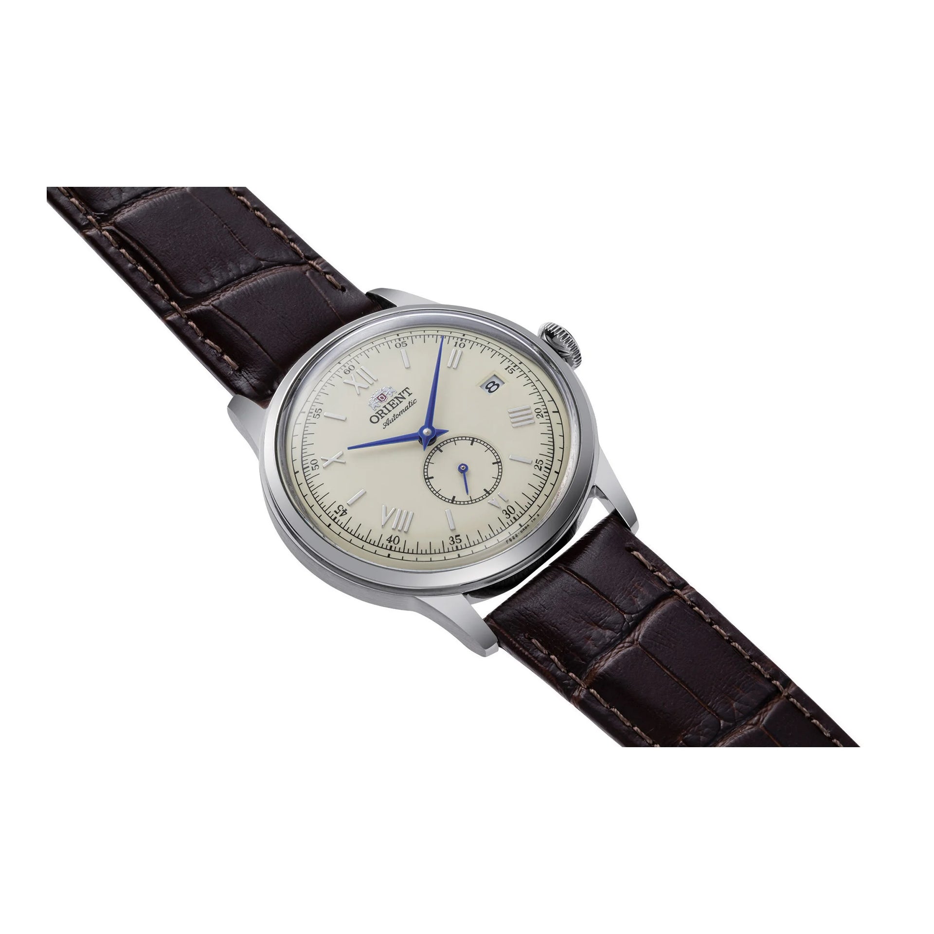Im Bereich zeitloser Eleganz erscheint die ORIENT AP01 Bambino 38 Small Seconds als ein Leuchtturm klassischer Raffinesse. Mit akribischer Liebe zum Detail gefertigt, verkörpert diese Uhr das Wesen eines verfeinerten Designs. Ihr rundes Gehäuse, getaucht in einen dezenten silbergrauen Farbton, ergänzt perfekt das schokoladenbraune Lederarmband und schafft eine harmonische Farbkombination, die den anspruchsvollen Gentleman anspricht. Der Gehäusedurchmesser von 38 mm bietet eine ausgewogene Präsenz am Handgelenk, während das Mineralglas Klarheit und Haltbarkeit gewährleistet. Unter der Oberfläche verspricht das mechanische Uhrwerk, angetrieben vom F6222-Kaliber mit 24 Steinen, Präzision und Zuverlässigkeit, verstärkt durch Handaufzug- und Automatikfunktionen. Das beige Zifferblatt, geschmückt mit einem Datumsanzeiger und drei Zeigern, strahlt einen Vintage-Charme aus, der sowohl zurückhaltend als auch fesselnd ist. Der transparente Gehäuseboden gewährt einen Einblick in die filigranen Mechanismen dieses Meisterwerks, ein Zeugnis seiner Handwerkskunst. Wasserresistent und mit einer Pull & Push-Krone ausgestattet, ist diese Uhr für diejenigen konzipiert, die die feineren Dinge im Leben schätzen. Die Dornschließe sorgt für einen sicheren Sitz und macht sie zum perfekten Begleiter für jeden Anlass. Mit einer täglichen Genauigkeit von +25/-15 ist die ORIENT AP01 Bambino 38 Small Seconds nicht nur ein Zeitmesser, sondern ein Statement von Stil und Raffinesse, eine Hommage an die dauerhafte Anziehungskraft klassischer Uhrmacherkunst.