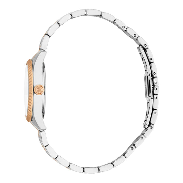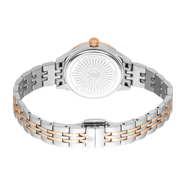 In der Welt der Mode, wo Eleganz auf Präzision trifft, entsteht eine Uhr, die das Wesen von Raffinesse und Stil verkörpert. Gefertigt im Herzen der Schweizer Uhrmacherkunst, ist diese Roberto Cavalli Lady Uhr ein Zeugnis für verfeinertes Design und zeitlose Anziehungskraft. Ihr rundes Gehäuse, getaucht in ein glänzendes Silbergrau, fängt das Licht bei jeder Bewegung ein, während der Durchmesser von 28 mm eine zarte, aber auffällige Präsenz am Handgelenk gewährleistet. Das Mineralglas schützt das oystergraue Zifferblatt, auf dem drei Zeiger anmutig tanzen, angetrieben vom zuverlässigen GL32 Quarzwerk. Eine Pull & Push Krone bietet nahtlose Einstellungsmöglichkeiten und verstärkt den benutzerfreundlichen Charme der Uhr. Das Edelstahlarmband, ebenfalls in Silbergrau, umschließt das Handgelenk mit einem Gefühl von Kontinuität und Anmut, gesichert durch eine Butterfly-Faltschließe mit Druckknopf für mühelose Eleganz. Mit einer Wasserdichtigkeit von bis zu 50 Metern ist diese Uhr nicht nur ein Mode-Statement, sondern ein vielseitiger Begleiter für die moderne Frau. Ihr Design spricht diejenigen an, die die feineren Dinge im Leben schätzen, bei denen jedes Detail sorgfältig zur Perfektion gefertigt ist. Diese Roberto Cavalli Lady Uhr ist mehr als ein Accessoire, sie ist eine Feier der Weiblichkeit und Mode, ein Stück, das mit jedem Ticken Luxus flüstert und Sie einlädt, die Kunst der Zeitmessung mit unvergleichlicher Anmut zu umarmen.